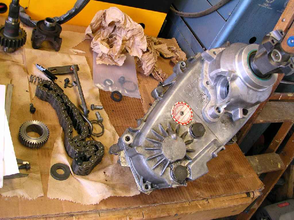The transfer case with the new Slip Yoke Eliminator partially installed.