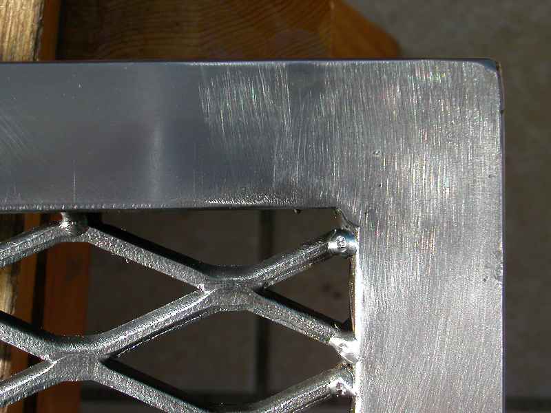 The welds were ground flush, then the entire piece wire-wheeled to clean. Then wet-sanded in solvent, and wiped clean. Painted with a clear finish.