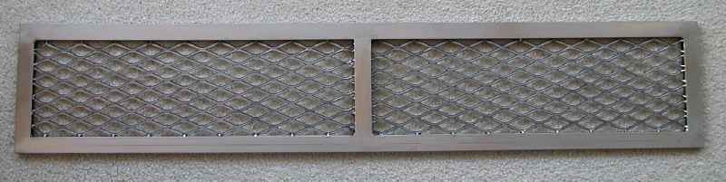 Welded from mild steel 1" x 0.5" rectangular tubing, with 1/16" wall thickness (NOT stainless). 2 sections of expanded mild steel were trimmed to fit the 2 openings.