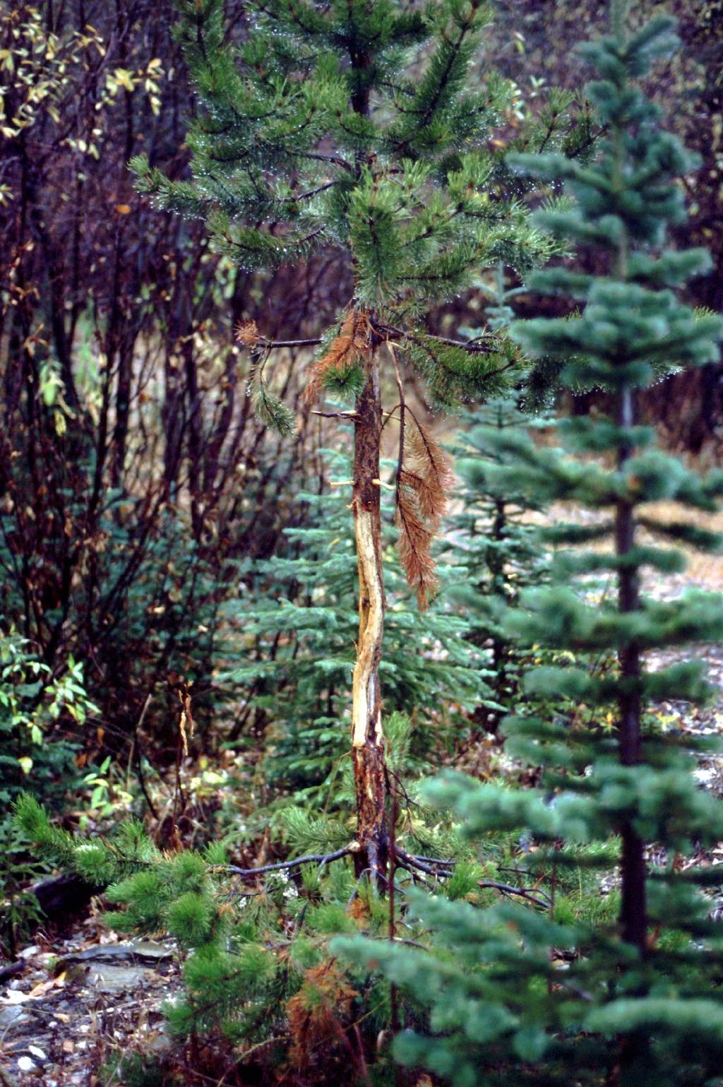 Evidence of the deer we were looking for. This tree was shredded, marked with the antlers of a deer.