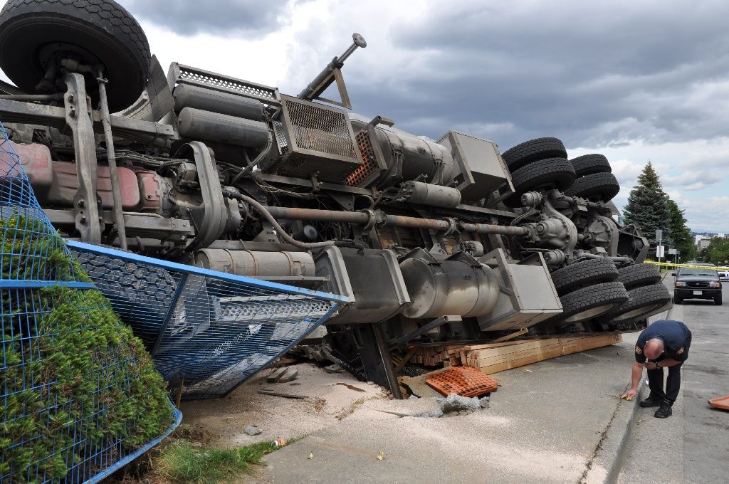 Why it fell over: The outrigger stabilizer punched through the sidewalk!