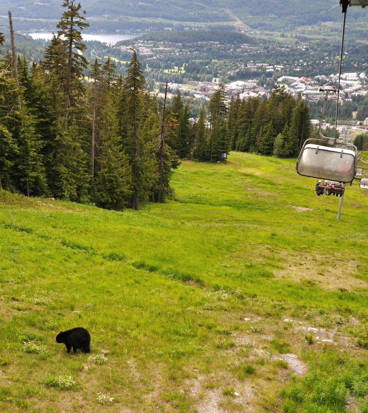 Going down the chairlift to the Blackcomb base. I don't think this bear has a lift ticket though...