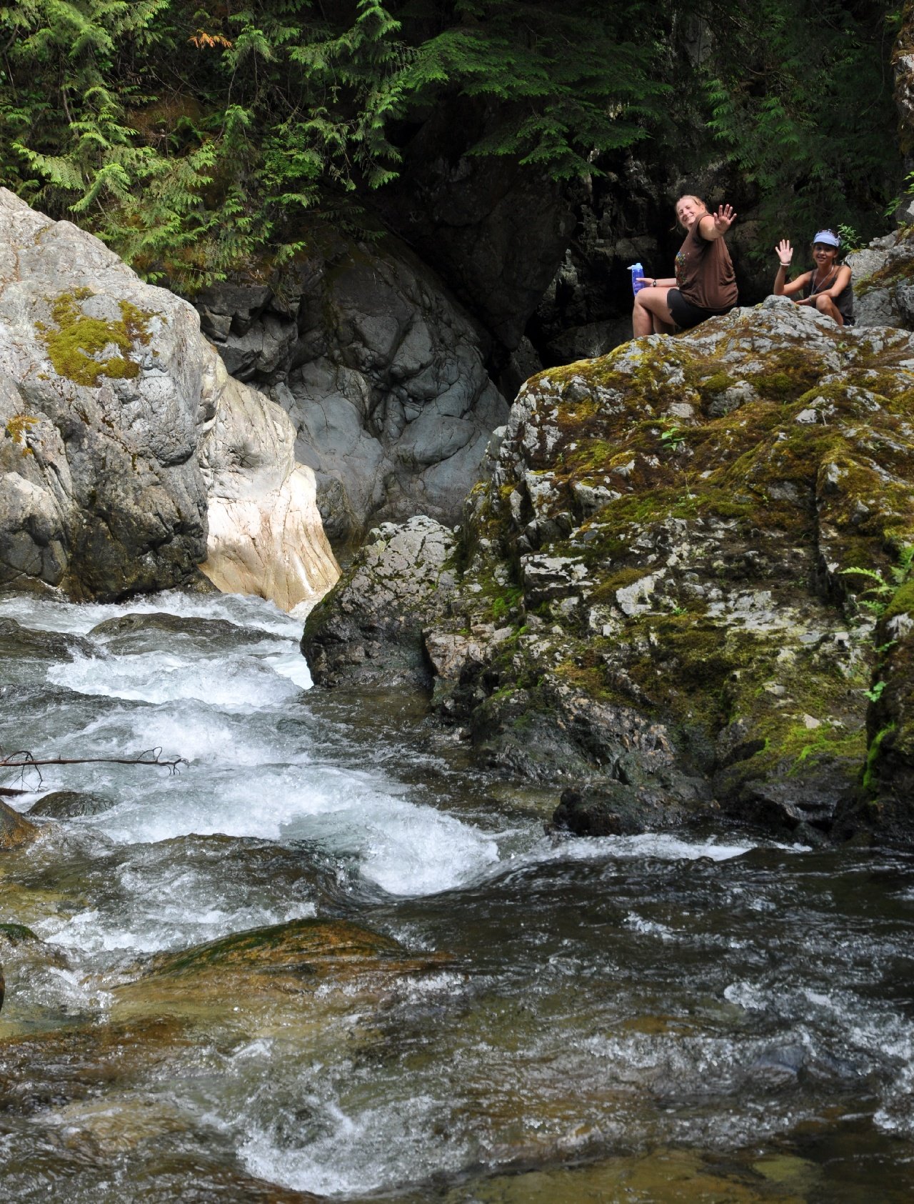 Studying the end of the trail: the water fall just beyond!