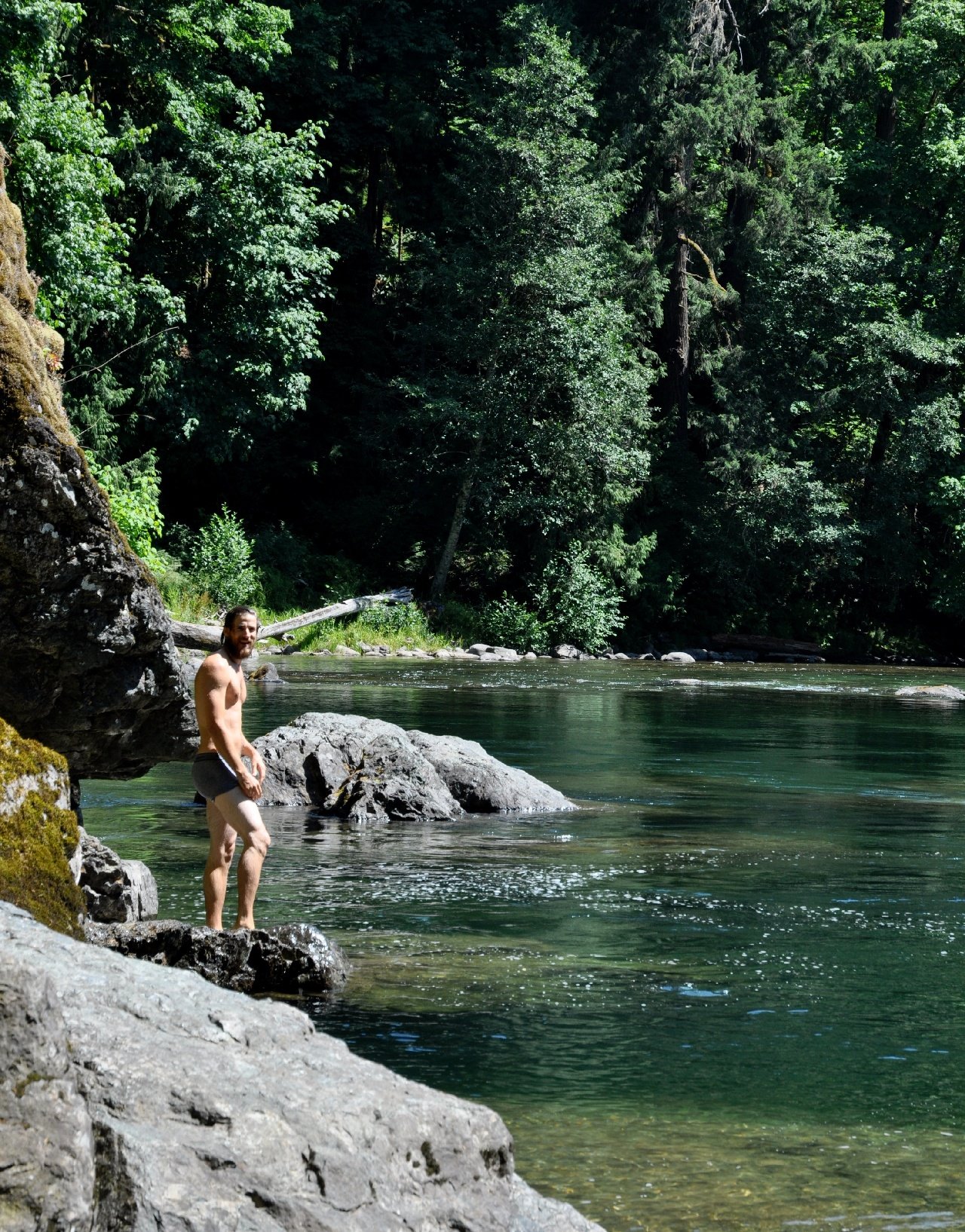 Peter went for a swim, jumping off the rocks.