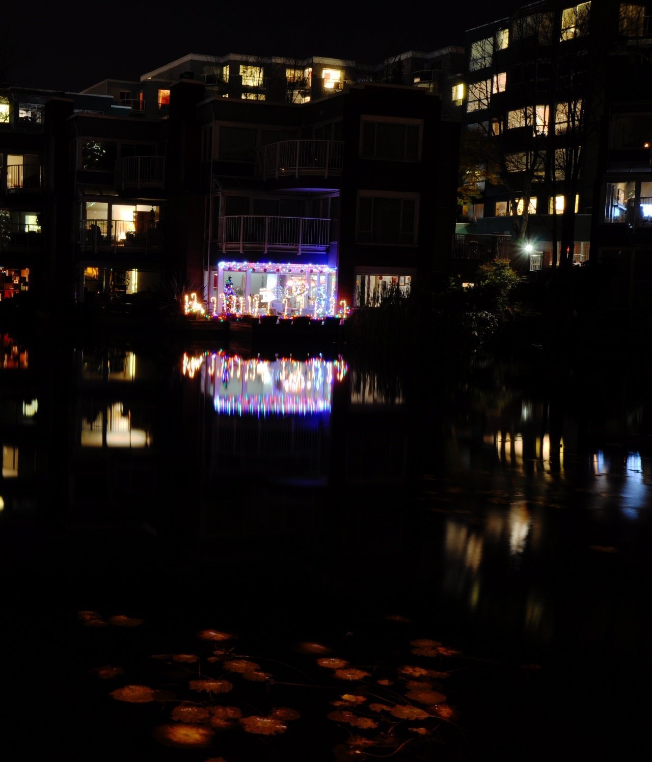 False Creek at night.