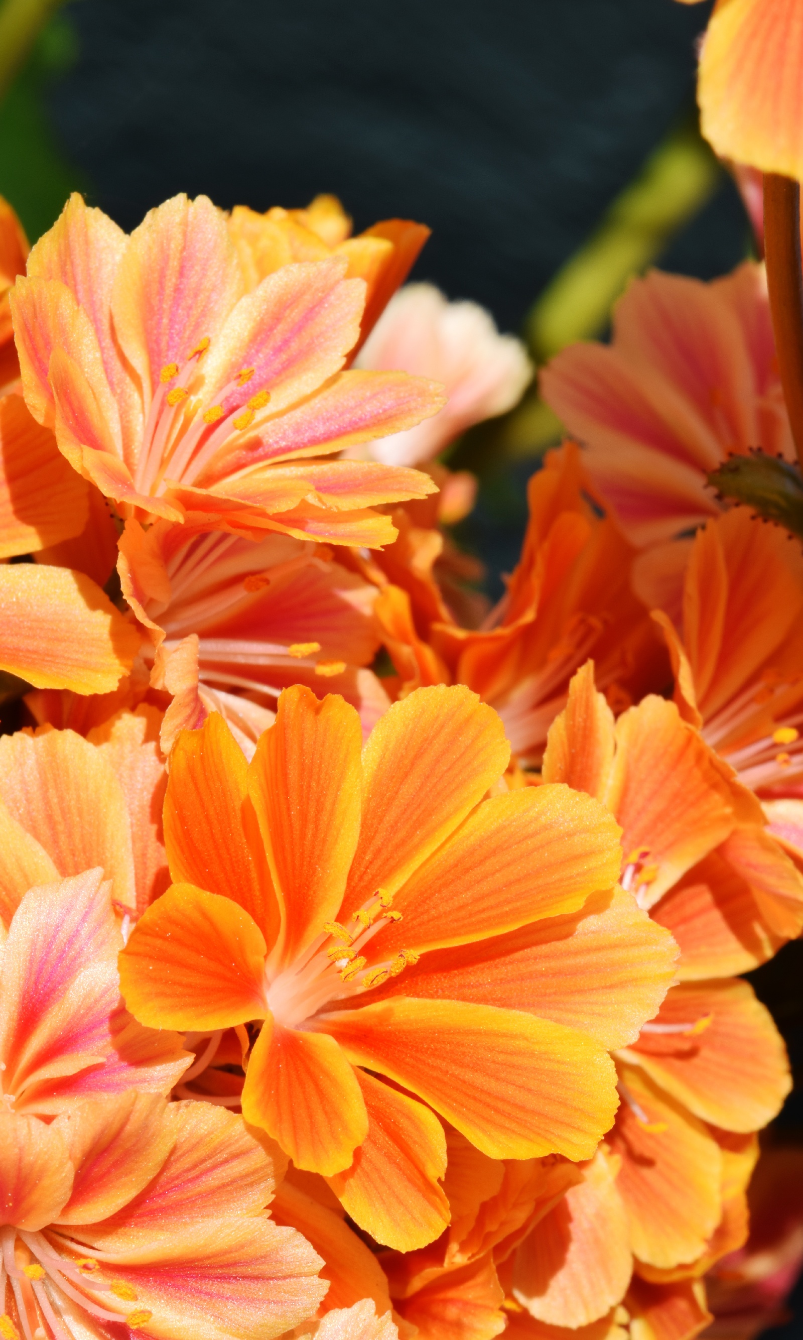 The strong orange of this Lewisia will fade and look like its neighbour within 2 days, though the flower will bloom for a few weeks.