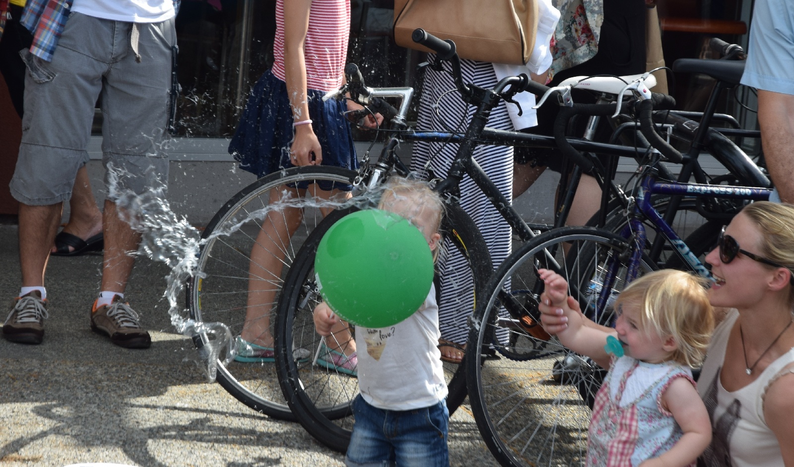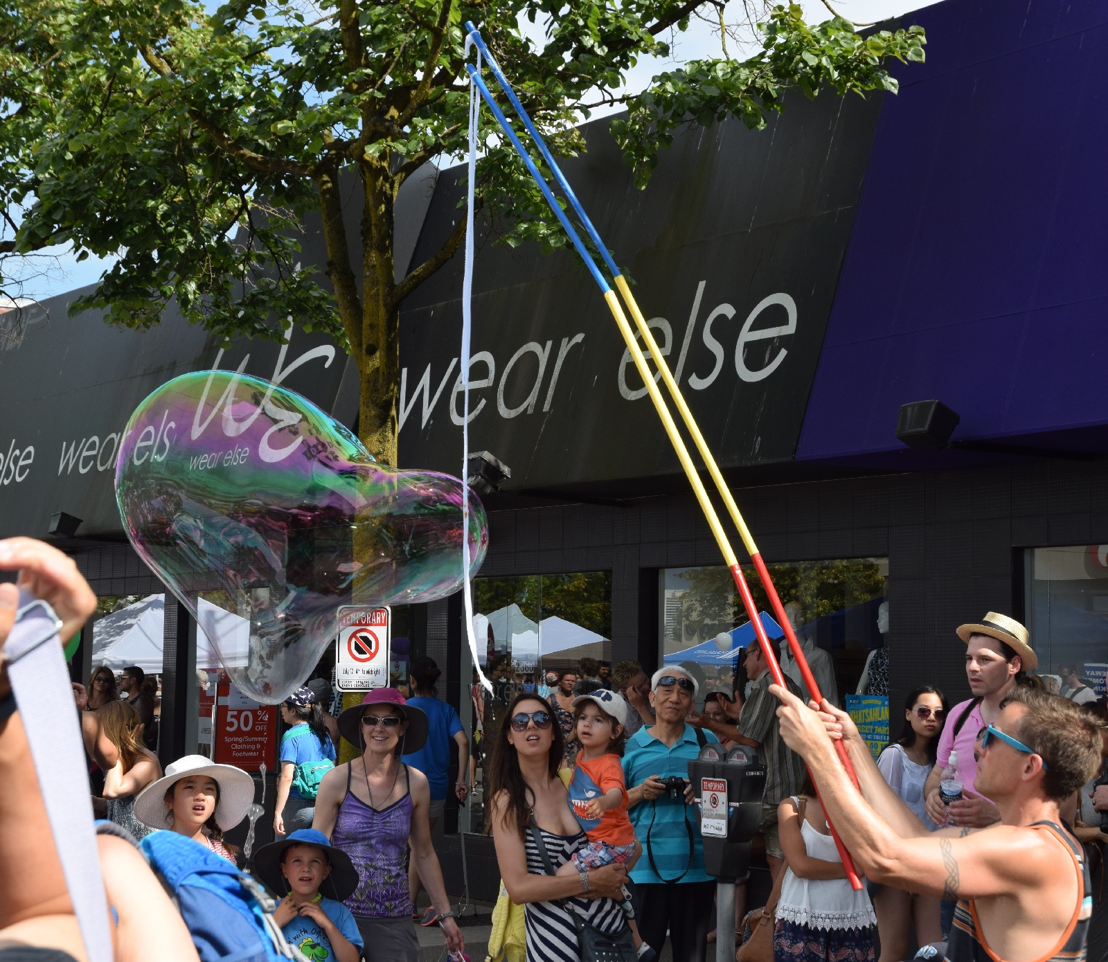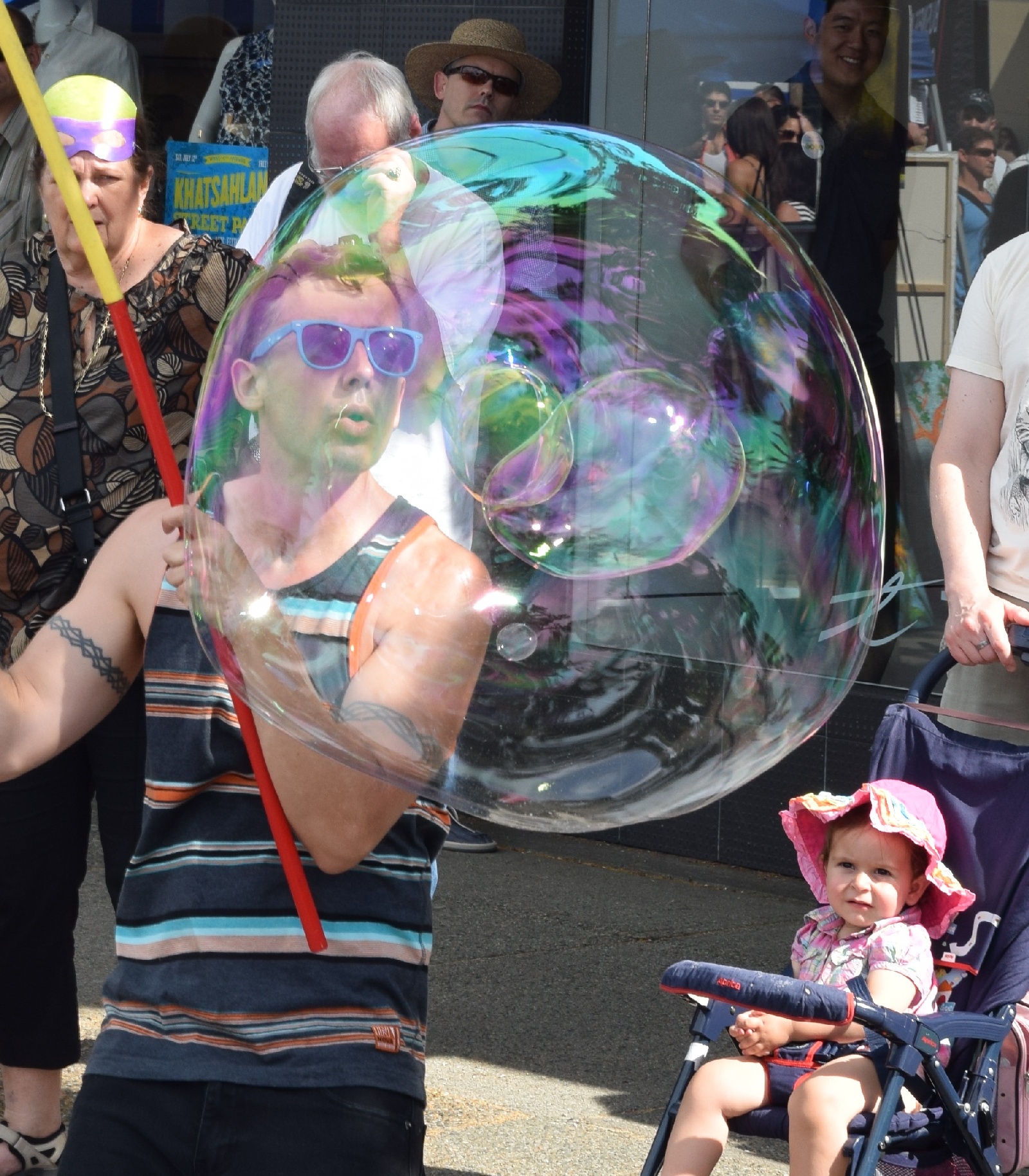 He blew on the bubble, and formed 2 more bubbles on the inside!