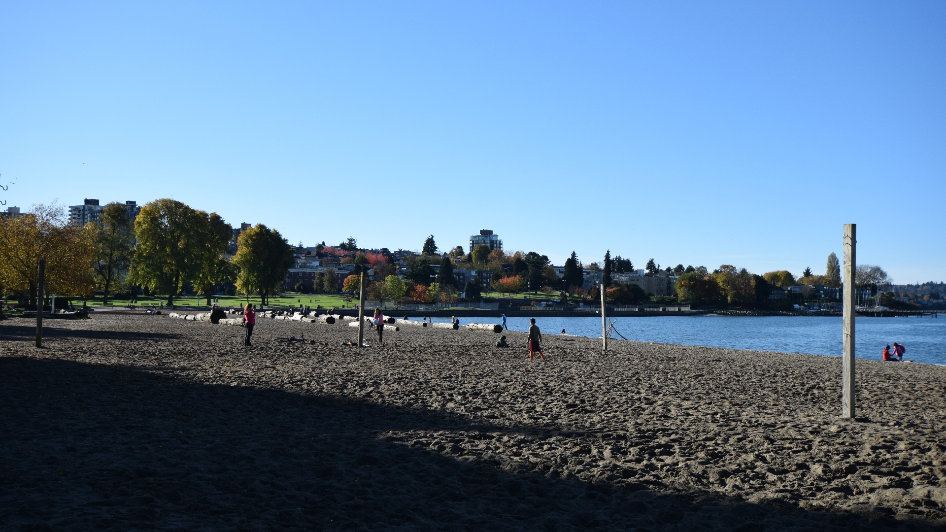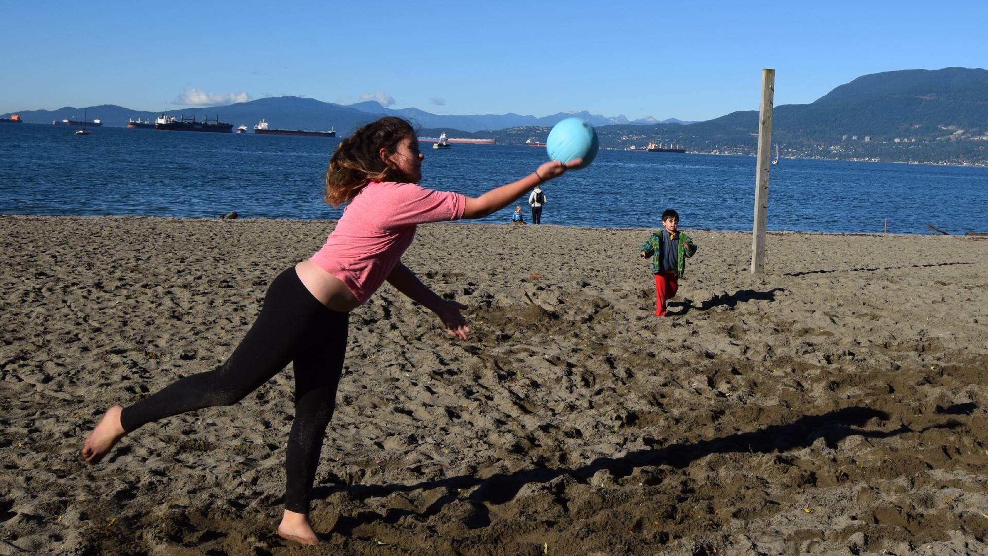 Hey! It was the Murphy family trying out their new blue volleyball! ...Danni serves...