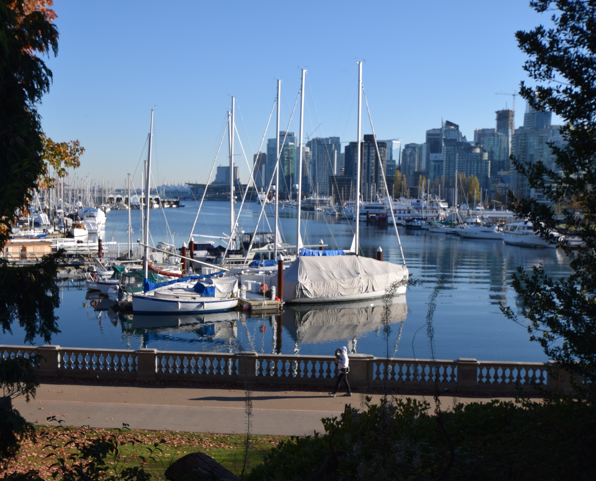 Siwash Rock, from the upper view point. Where are all the walkers, joggers, and cyclists usually on the trail below ??