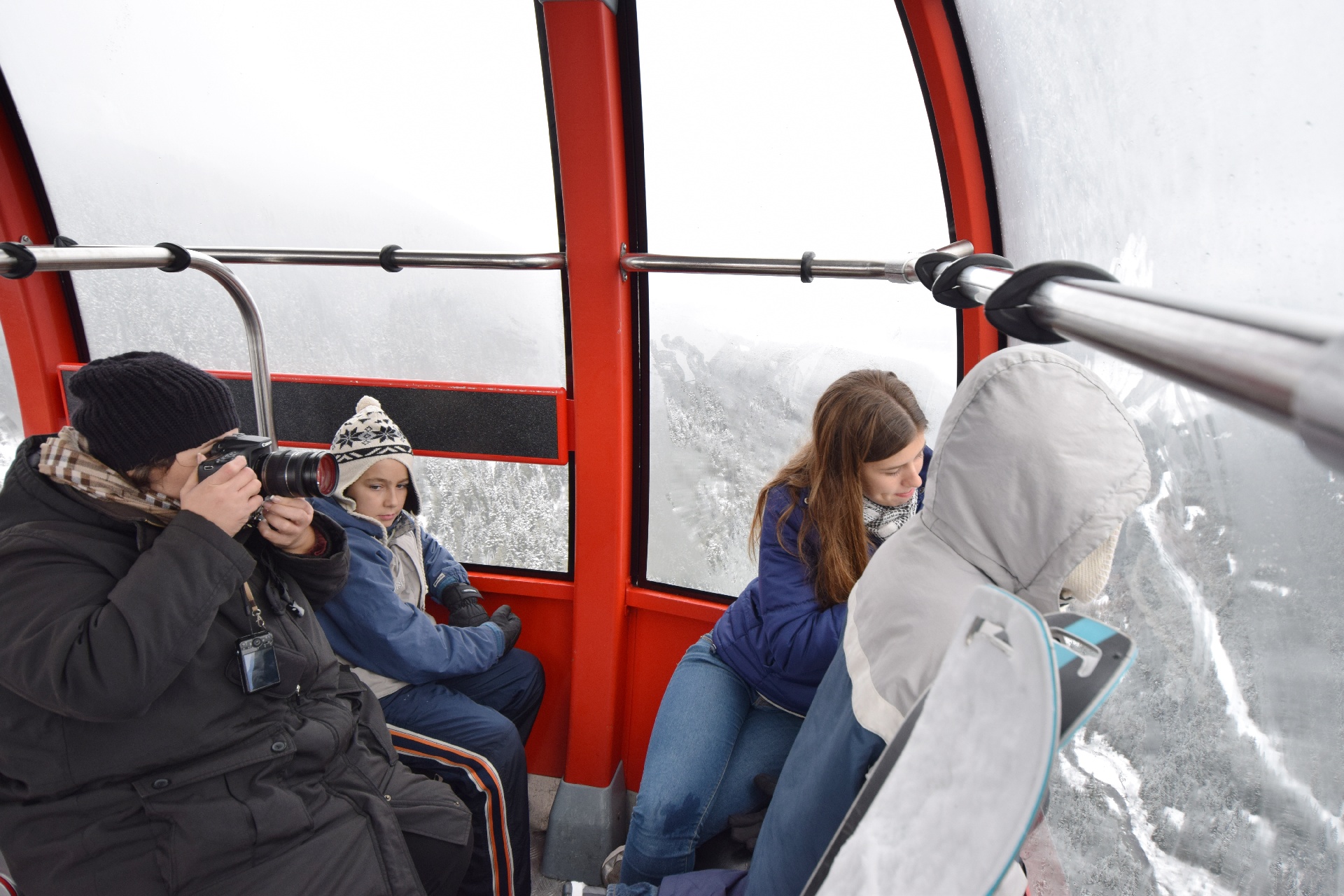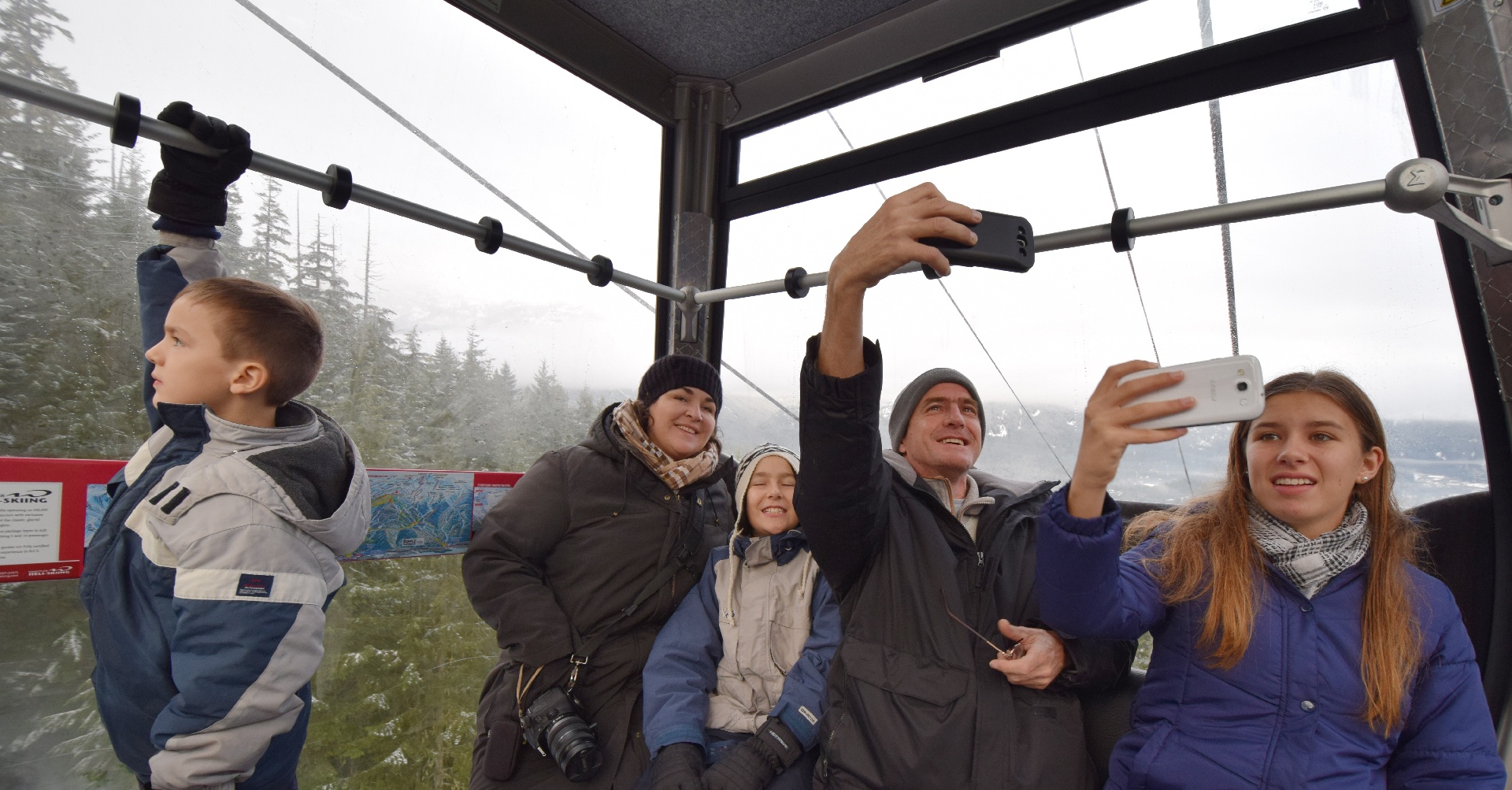 First ride in a ski gondola! ...iiiiit's selfie time!