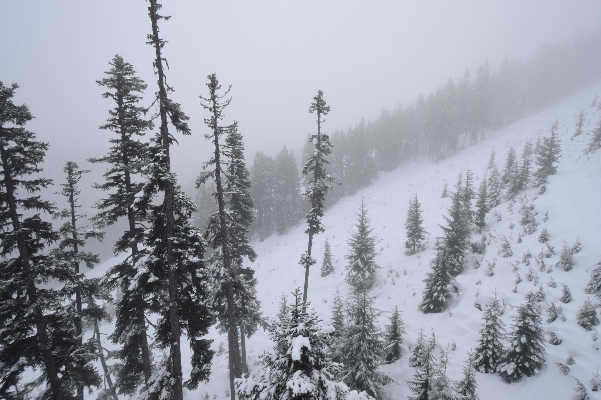 It was mixed weather, some fog, cloud, snow, and sunshine.