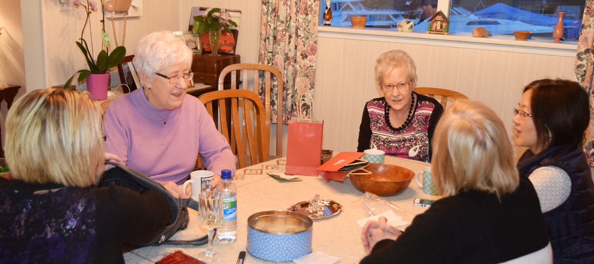 The birthday girl, with her sister, two daughters-in-law, and a grand-daughter-in-law!