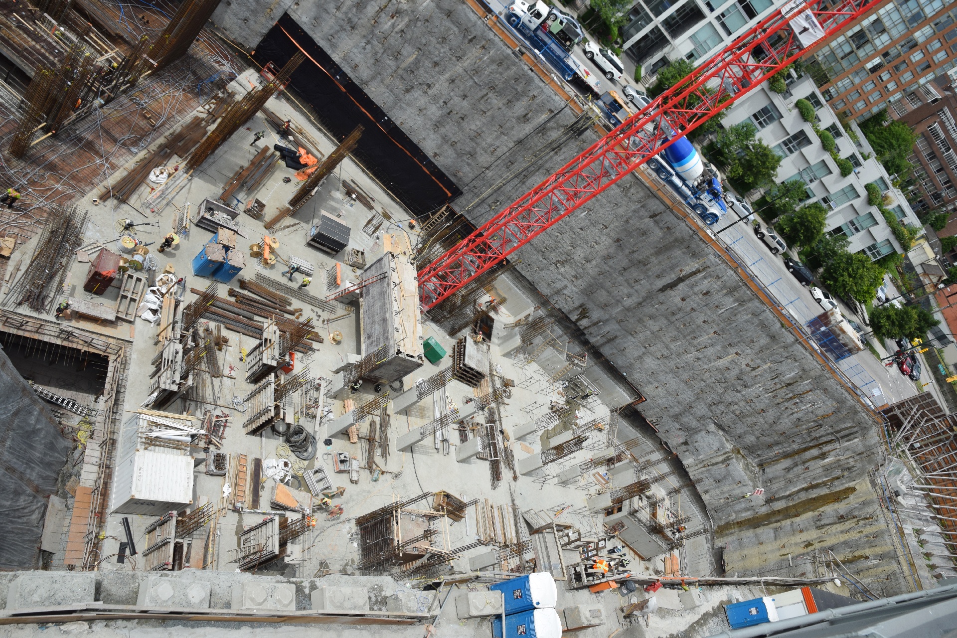 This building will have deep roots. They are removing the diagonal steel pipe braces as each floor is completed and the floor itself becomes the brace.