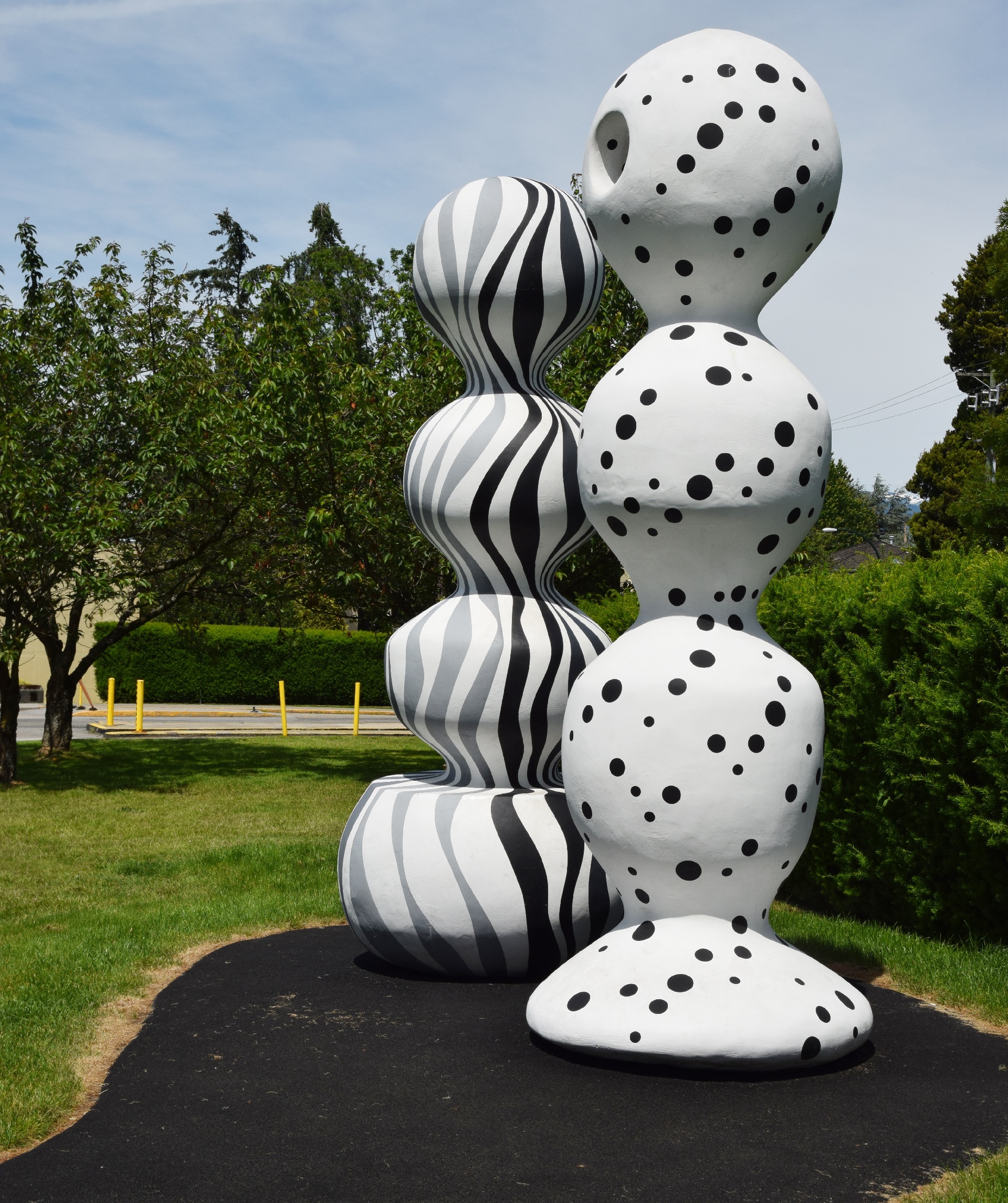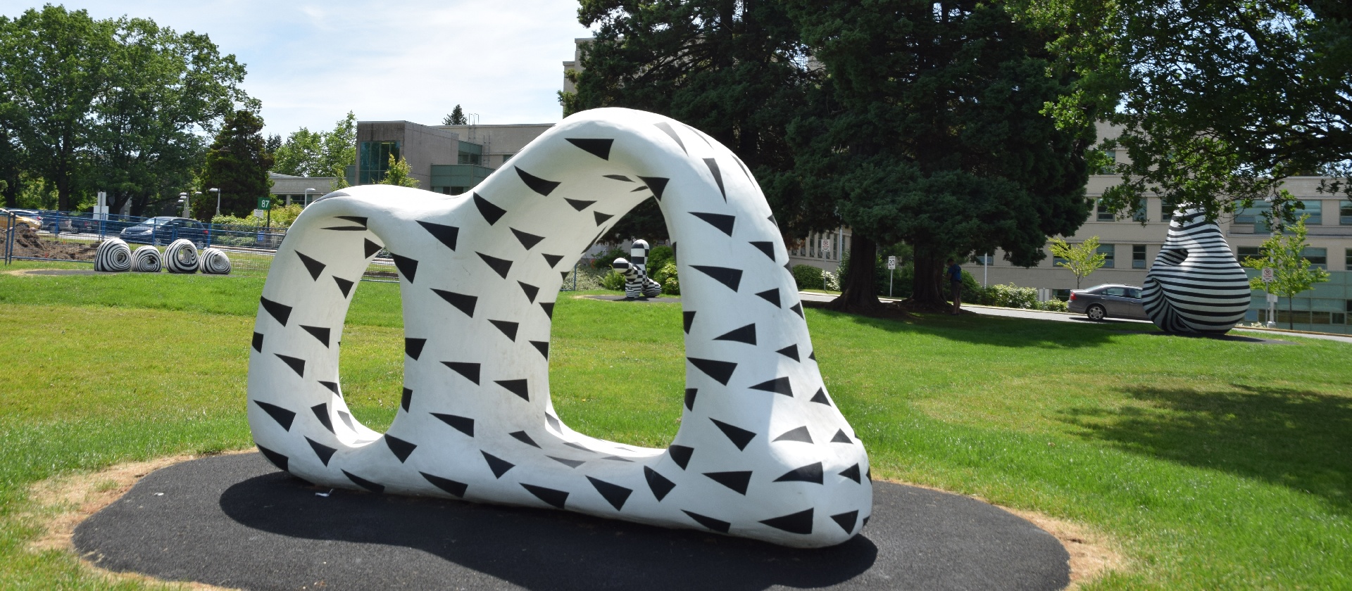Near Women's Hospital, this public artwork is... is... is. (um, isn't it supposed to be vertical stripes that are slimming?)