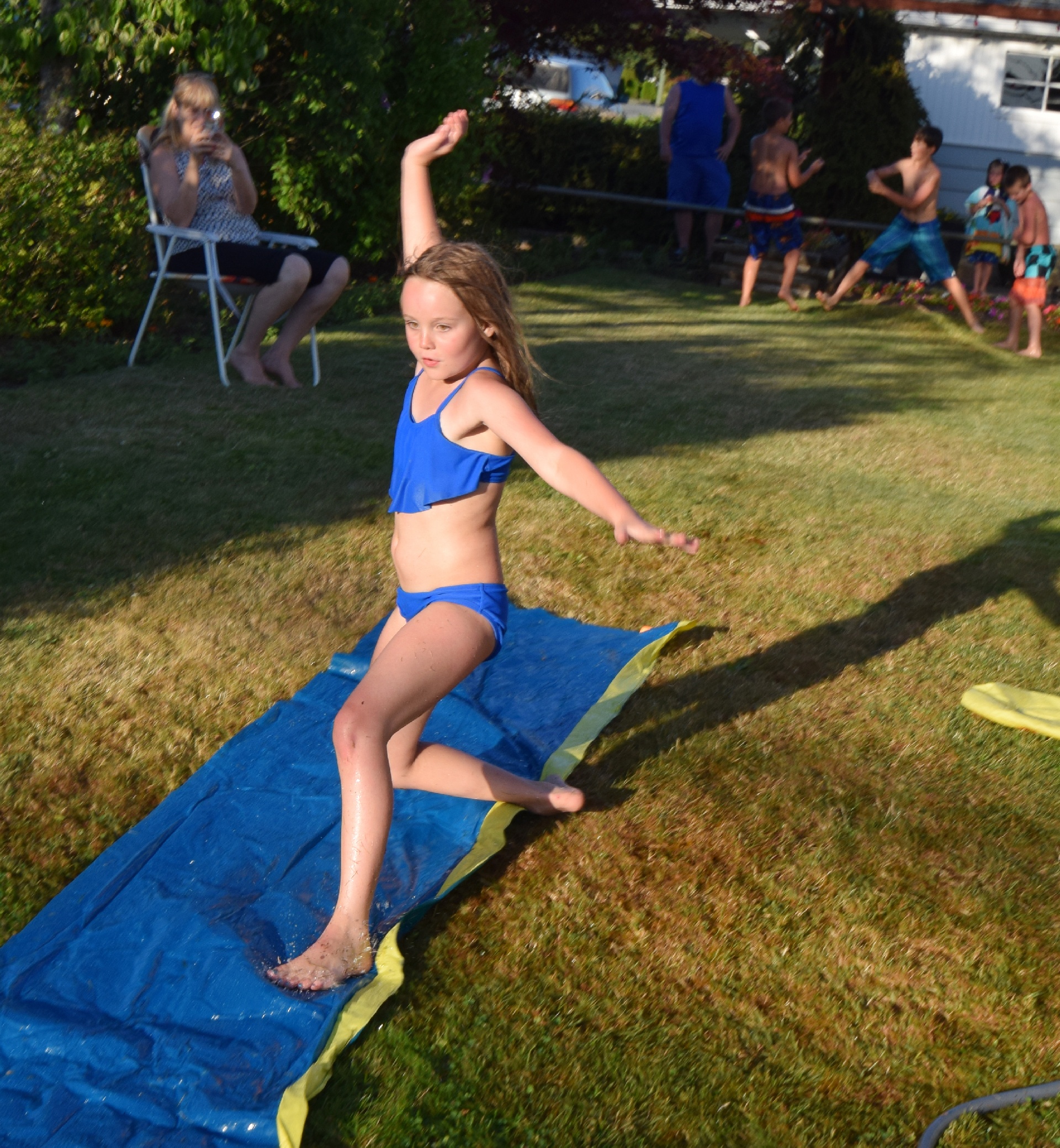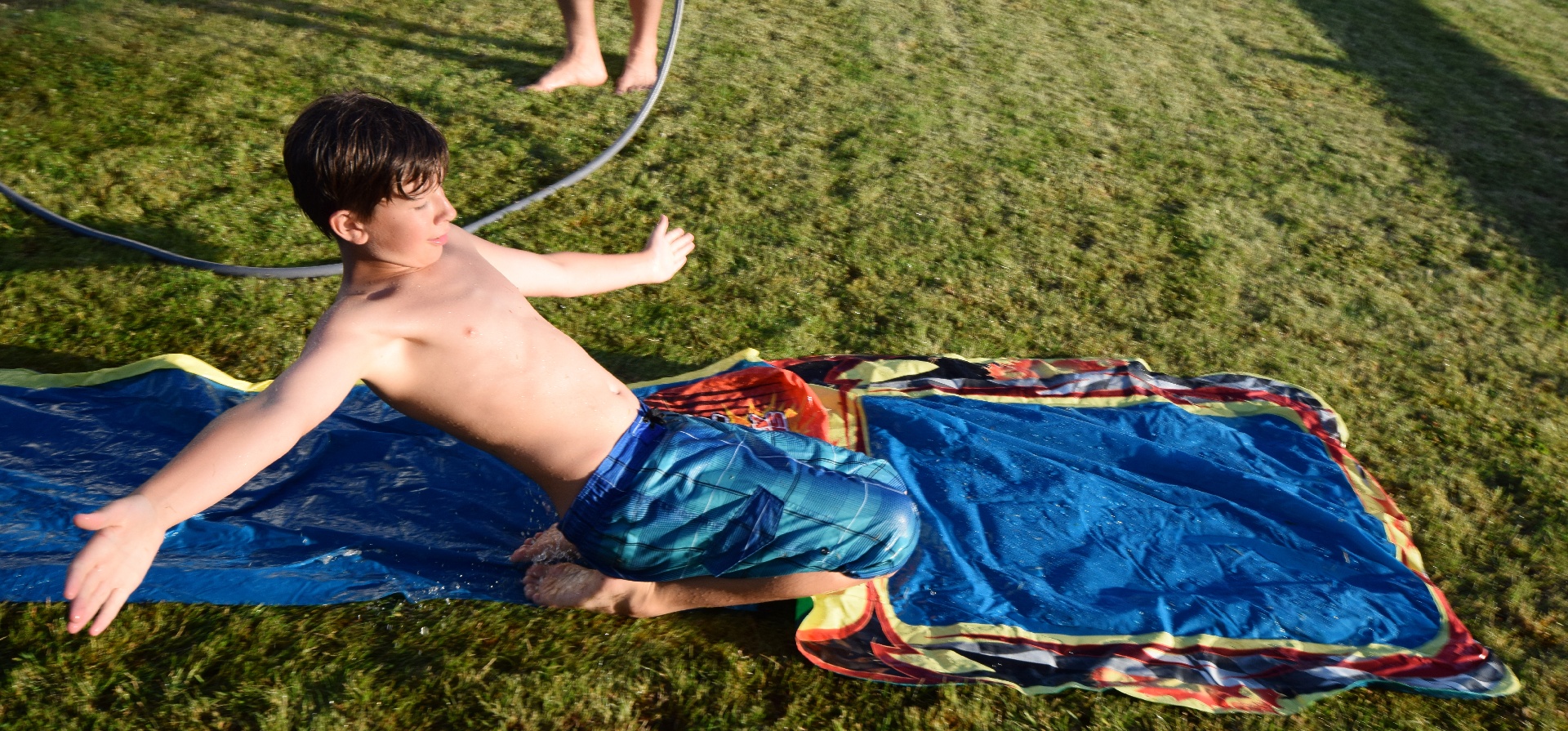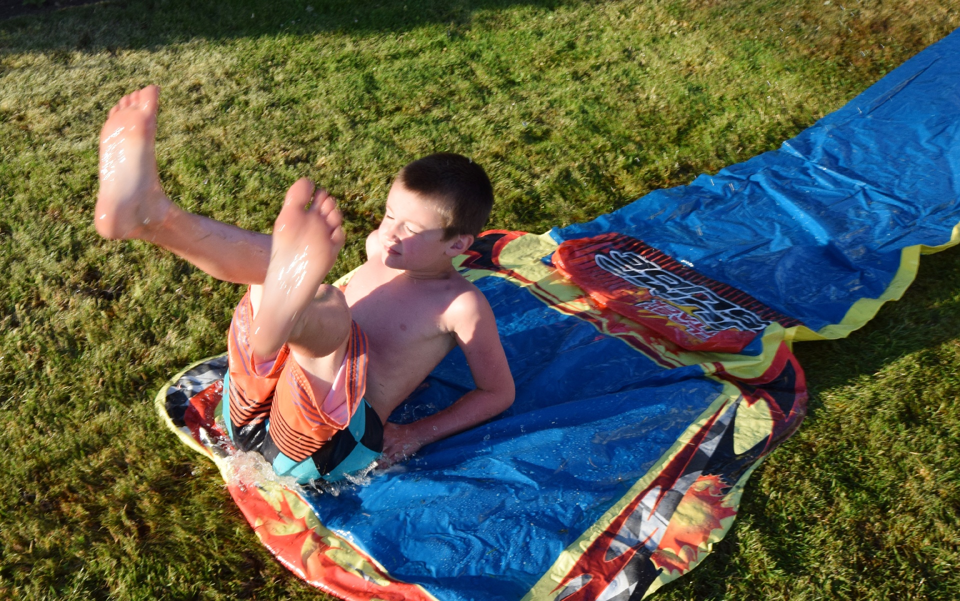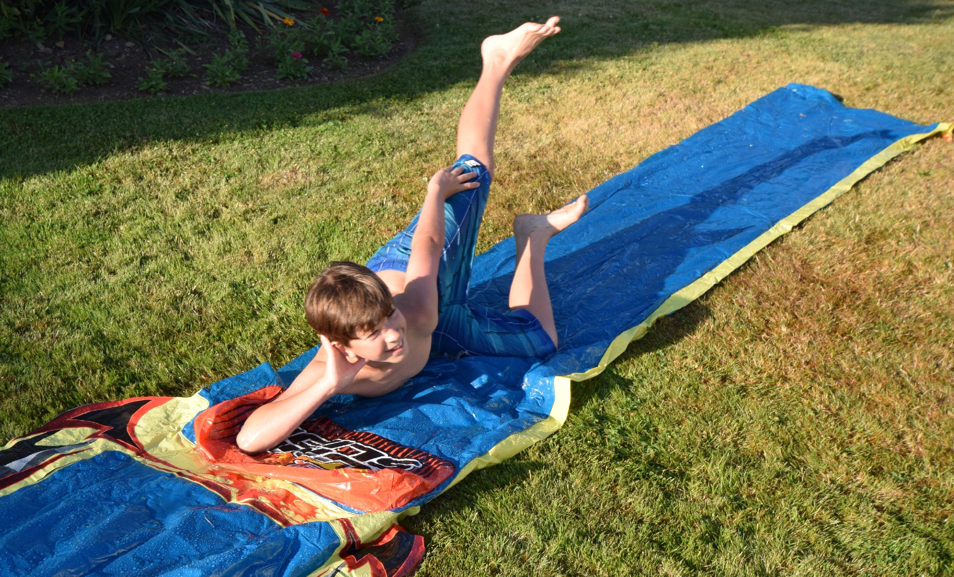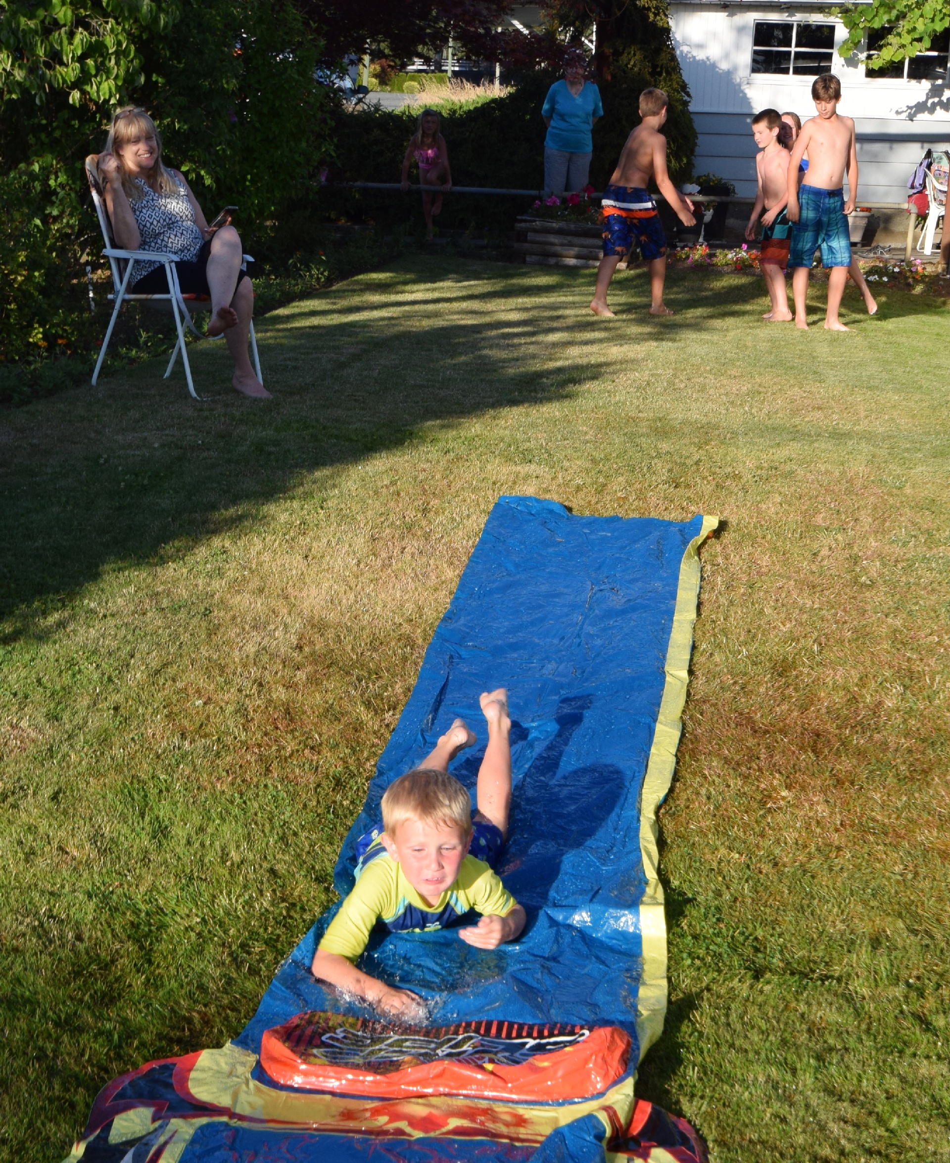 Looks like it's now time to water Oma's lawn! ...with Lucas' help!