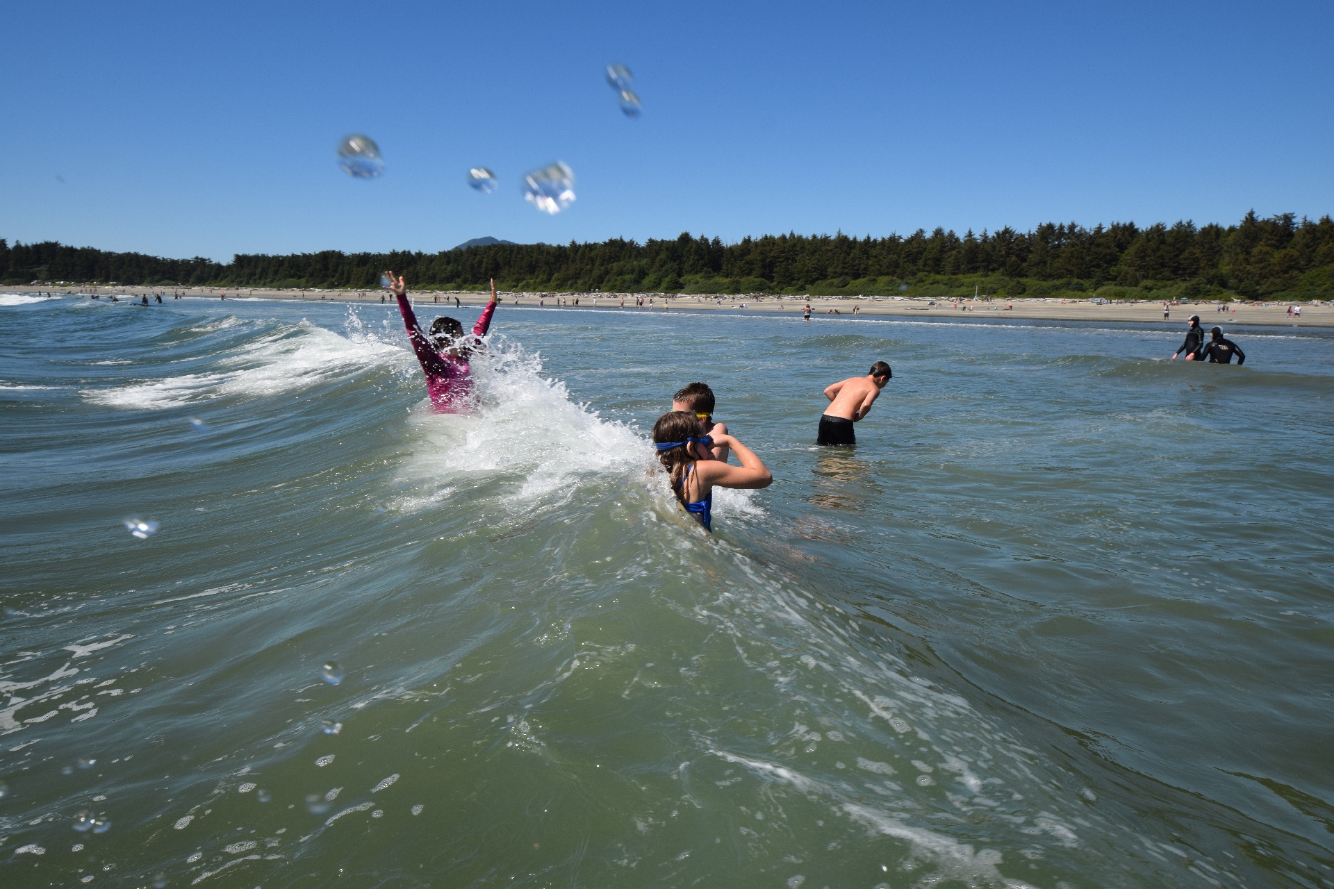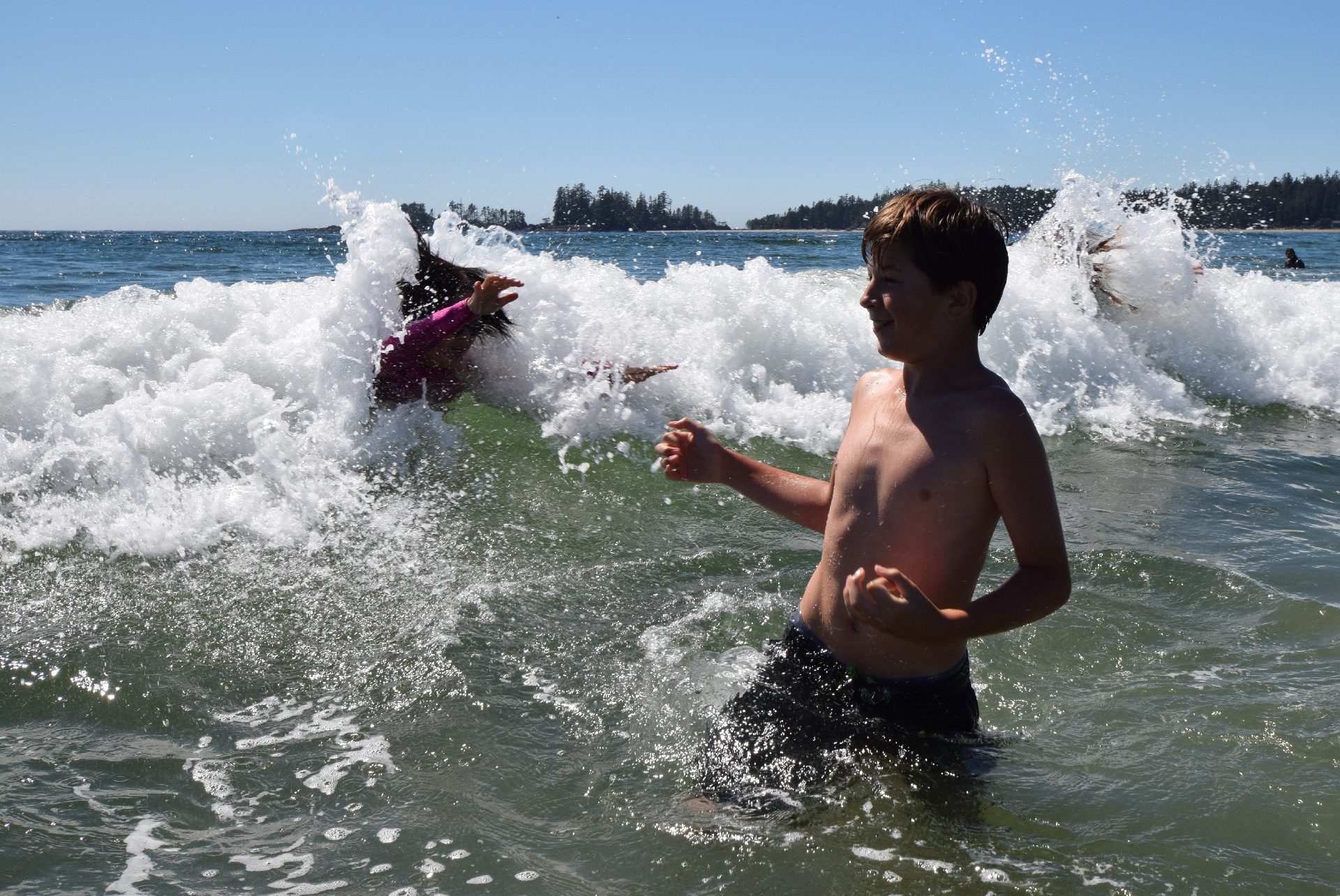 Yes, it is risky carrying a large camera into the waves, and yes, it did get splashed... Oops!