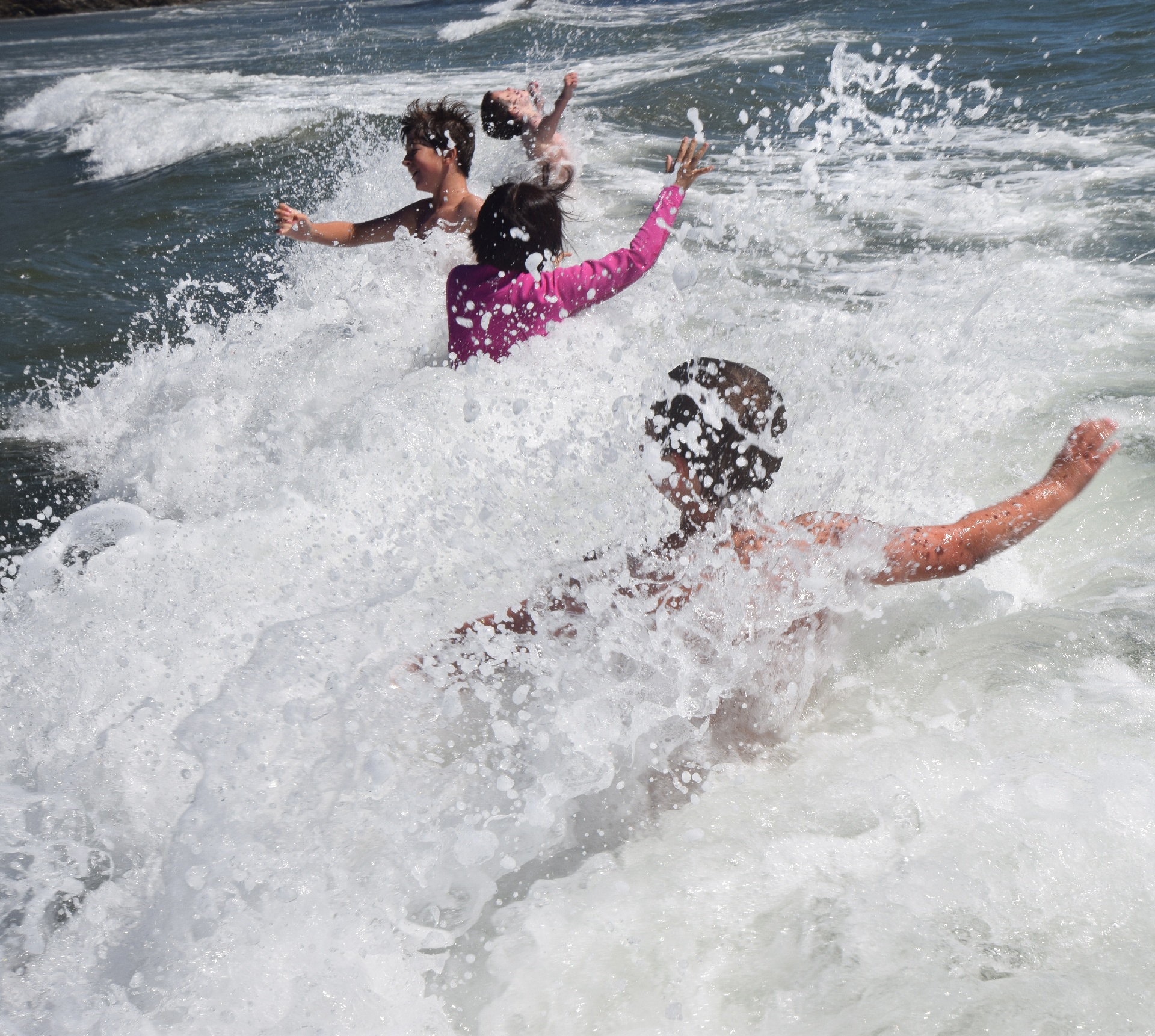 Finn, Yuko, Jack, and Palmer, in perfect unison! It took a long time to have all the variables come together for one good picture! (I carried a small towel to dry the camera as needed)