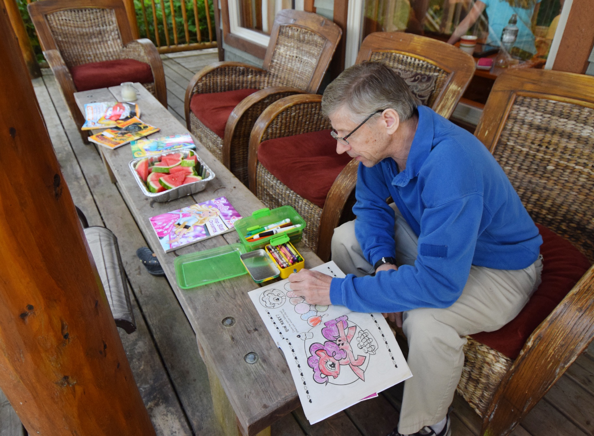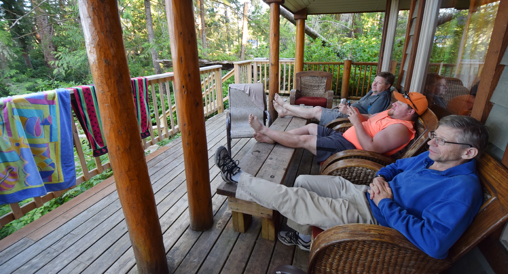 ...and the guys relax on the veranda... Maybe they could help find Alaina?