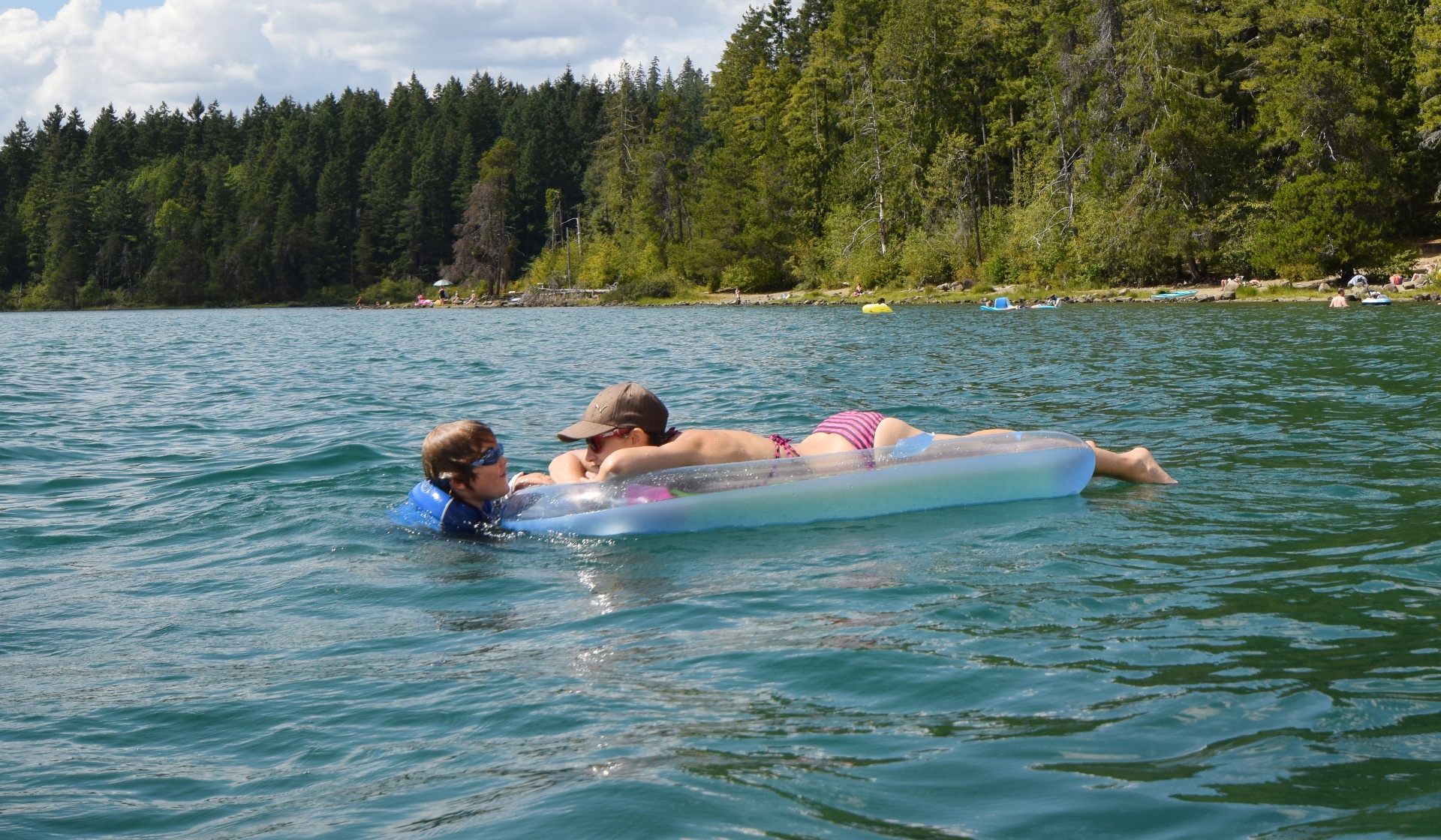 Ocean would swim under the floatie, and Jen would watch...