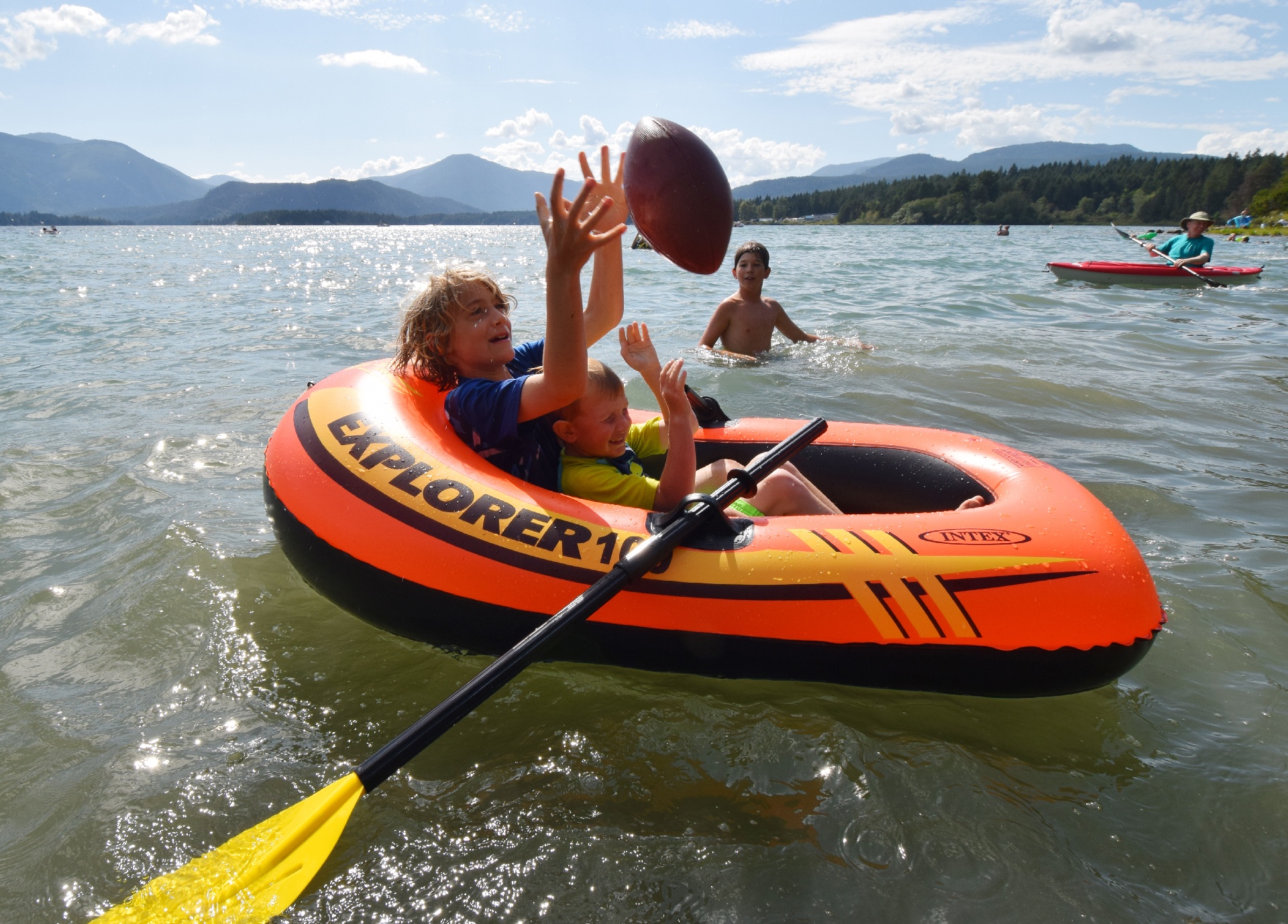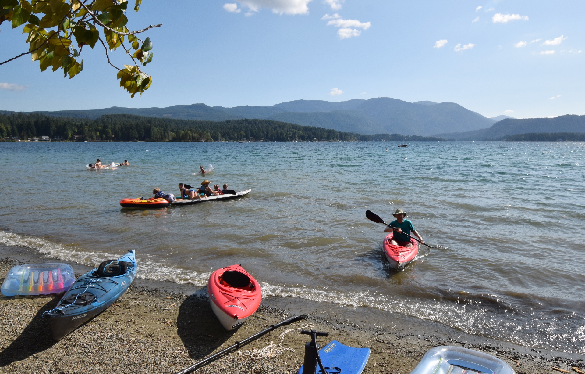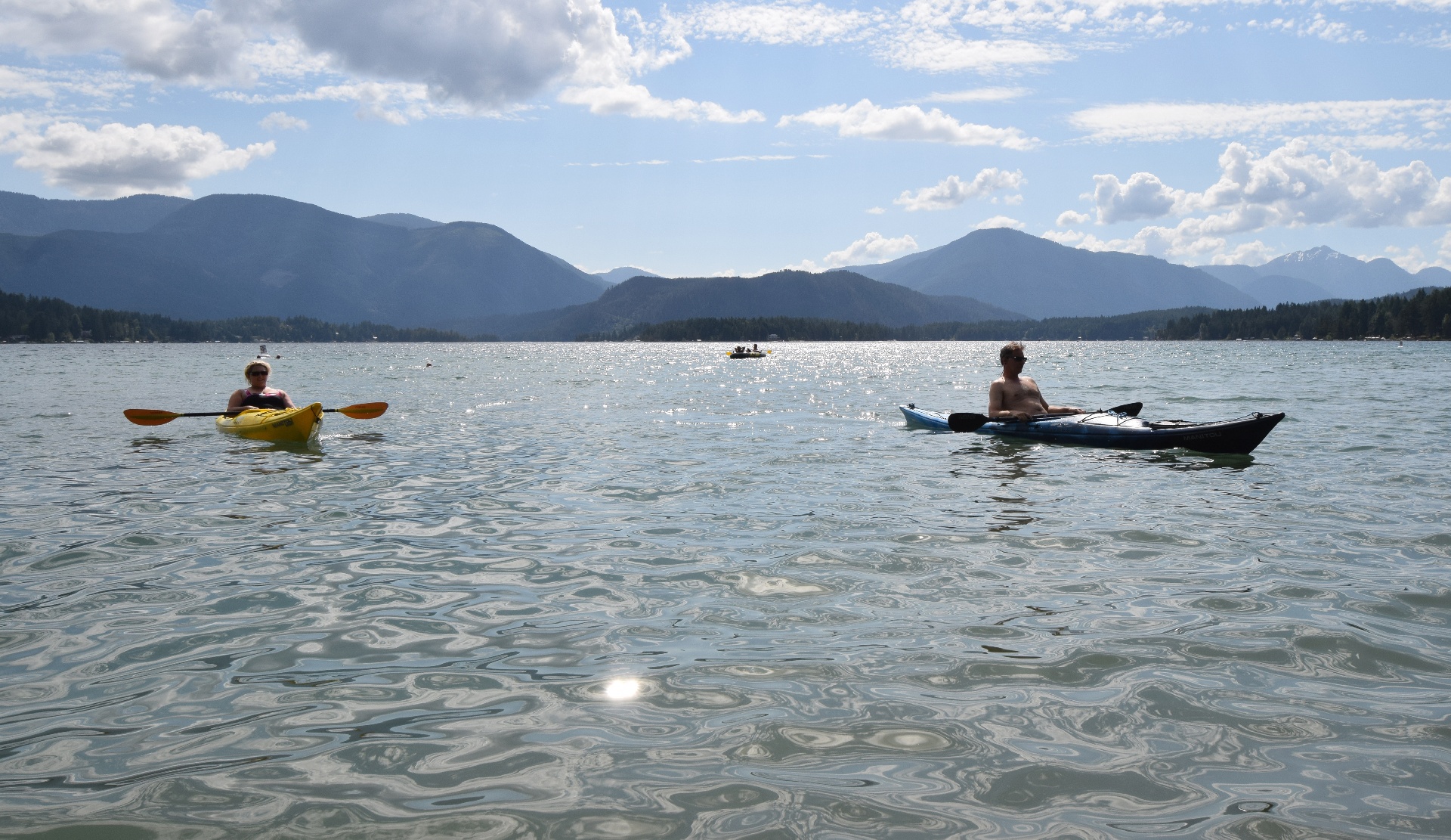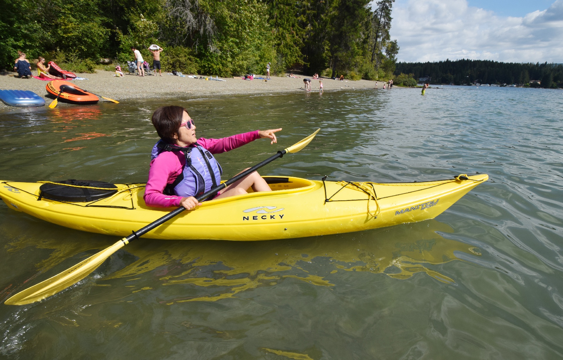 Peter takes the blue kayak for a run, while Yuko is getting hers ready to go...