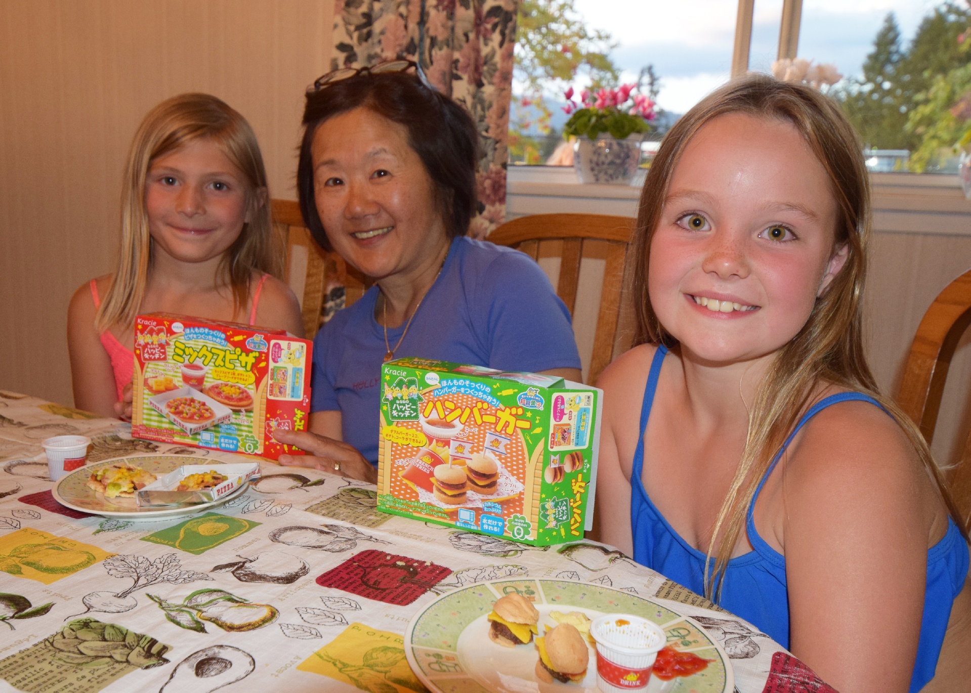 Back at Oma's, the girls were making minature hamburgers and pizzas from the kits that Yuko brought back from Japan...