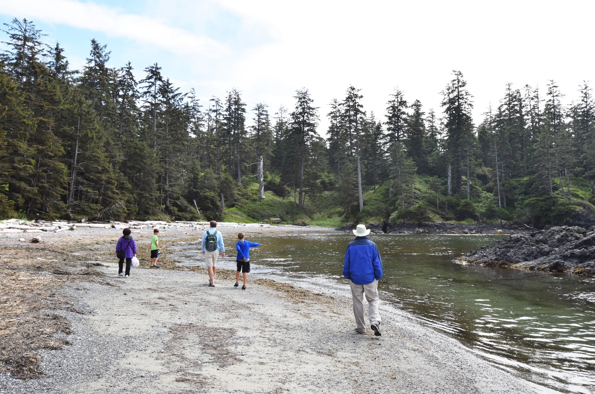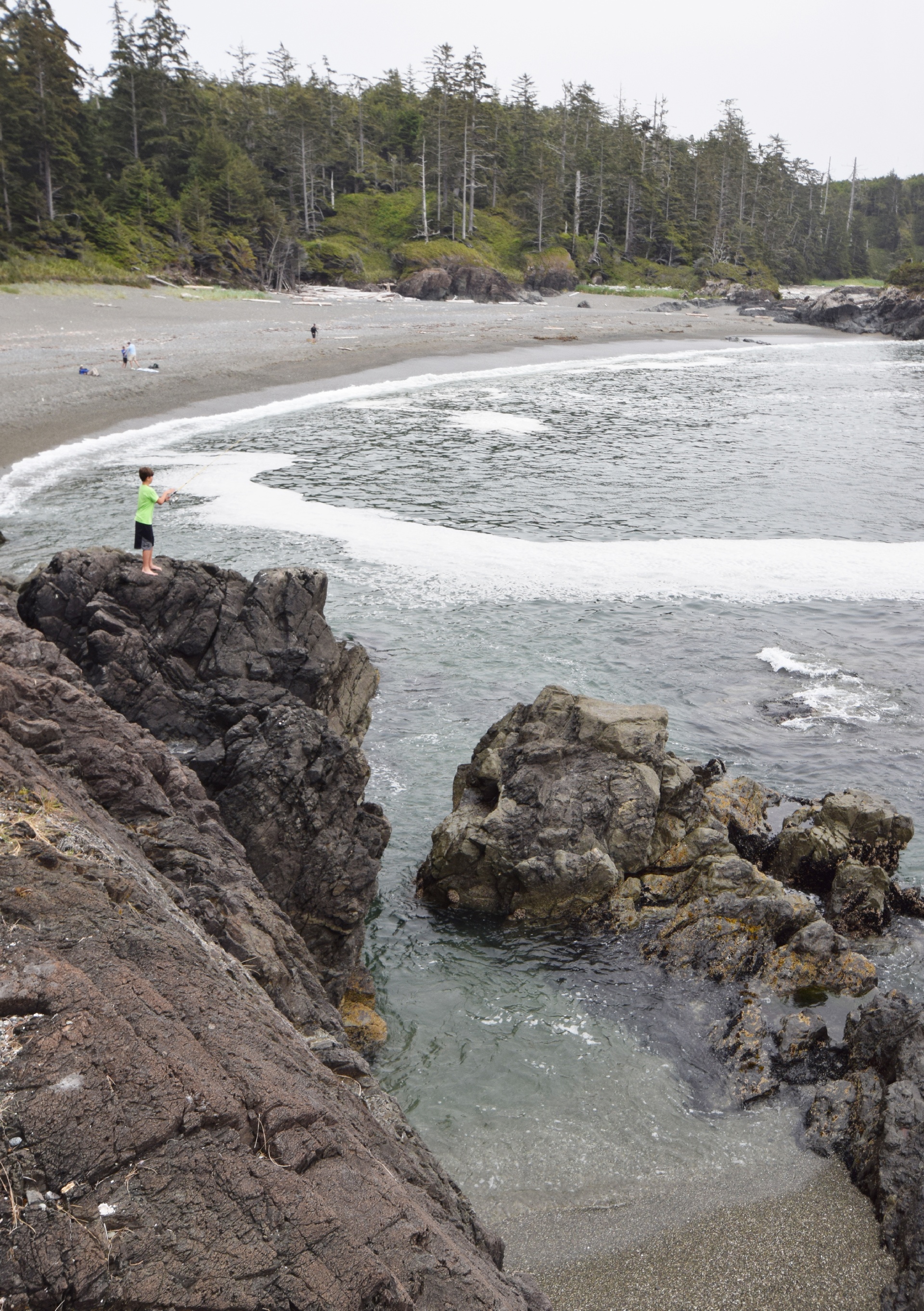 Peter brought his surfboard, and remained near the Wickaninnish beach area, while the rest of us headed for the ever popular pebble beach!