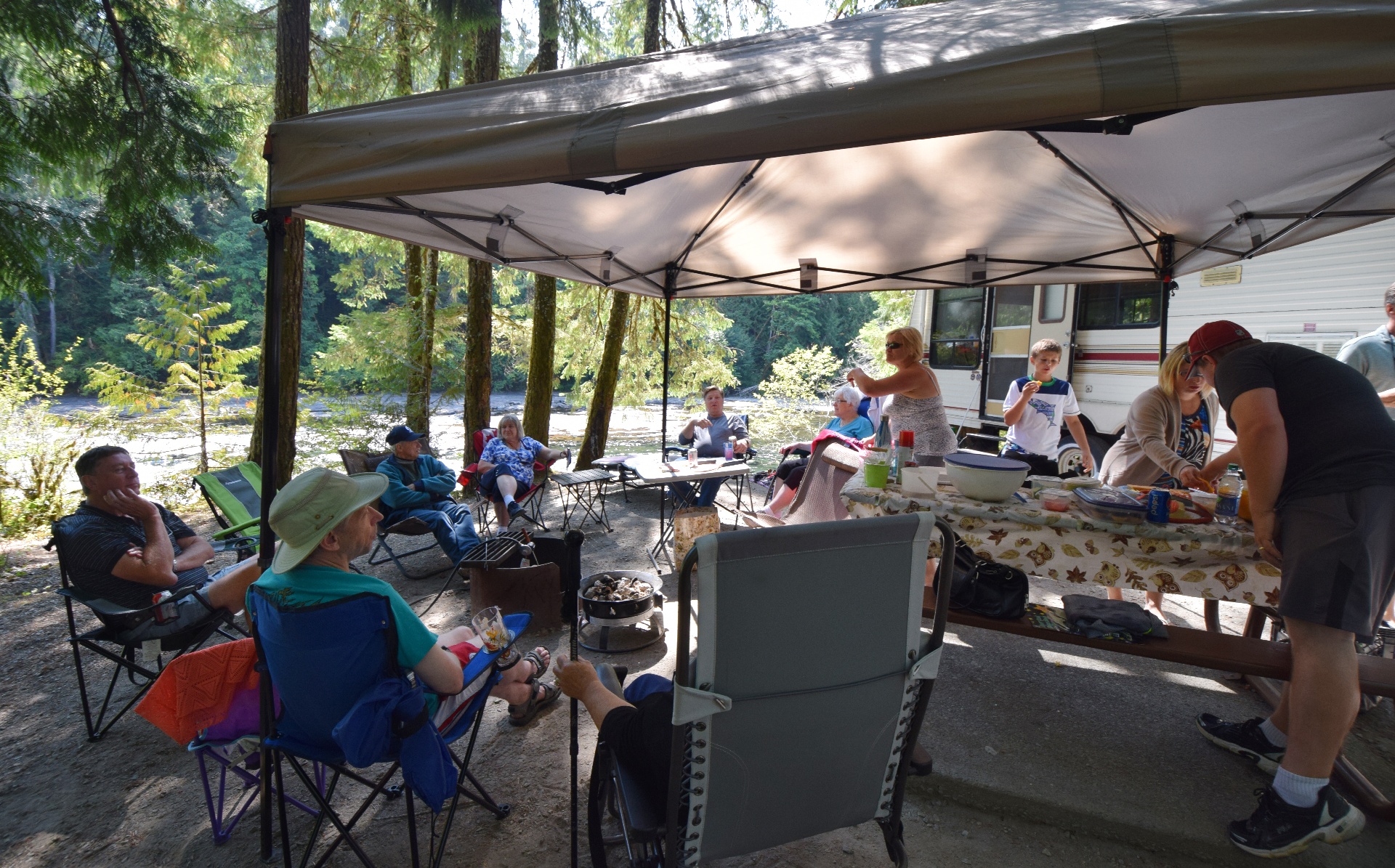 Lunch time! Relatives of Sharlyn had dropped by, including her father, who might have been checking up on his trailer...
