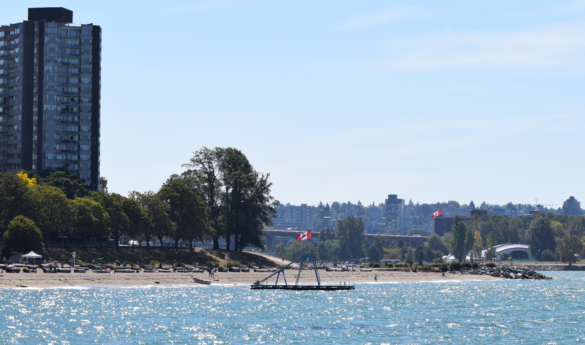 On a cooler and windy morning, the beaches aren't as crowded.