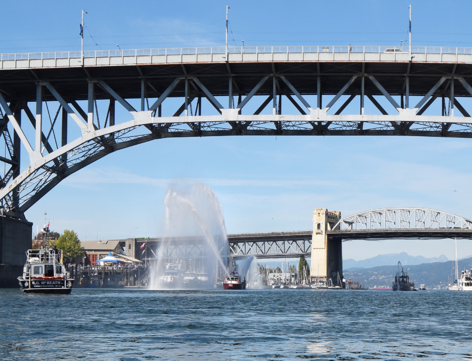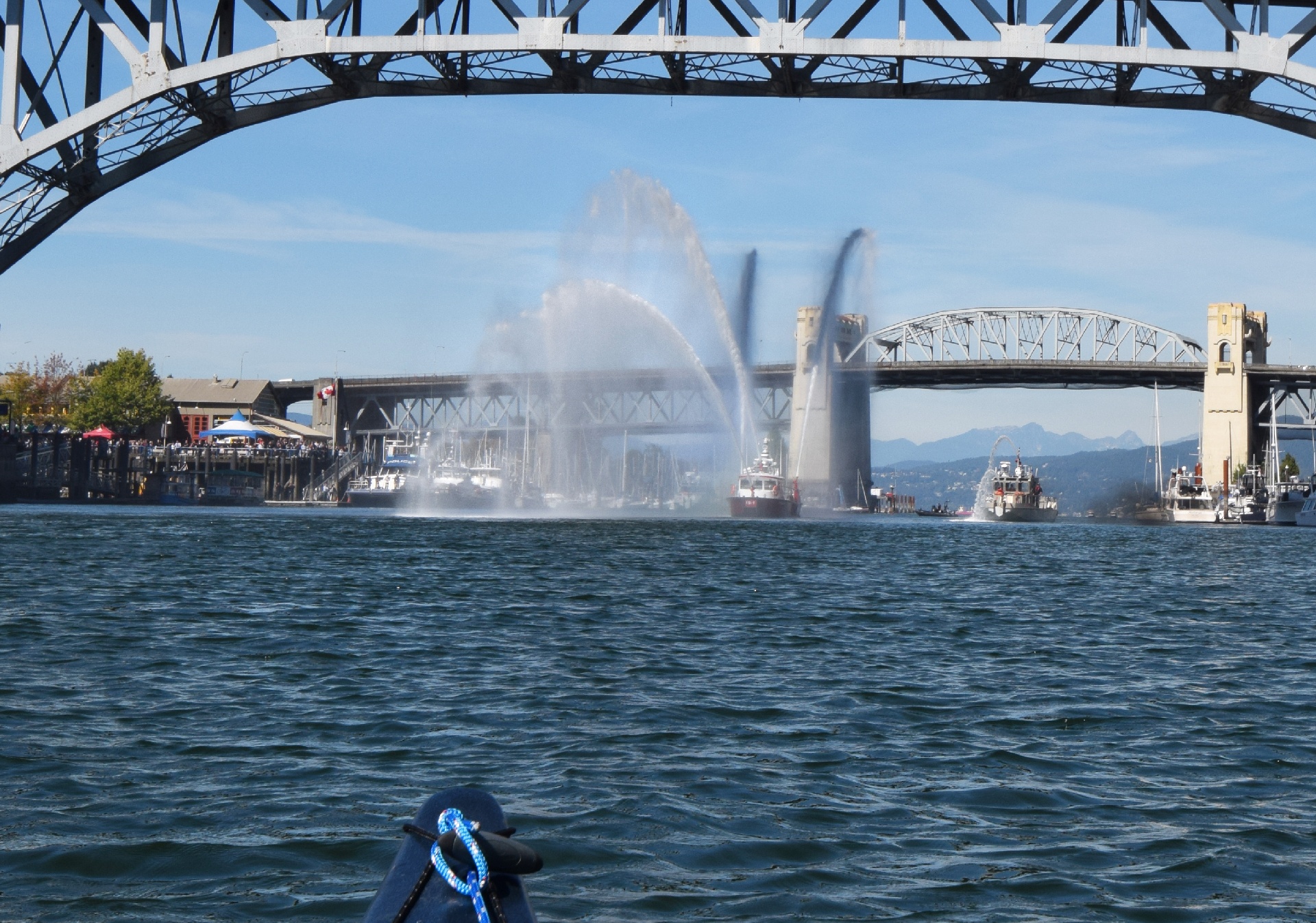 The boats stopped at Granville Island, where there was a welcoming committee of other rescue service boats.