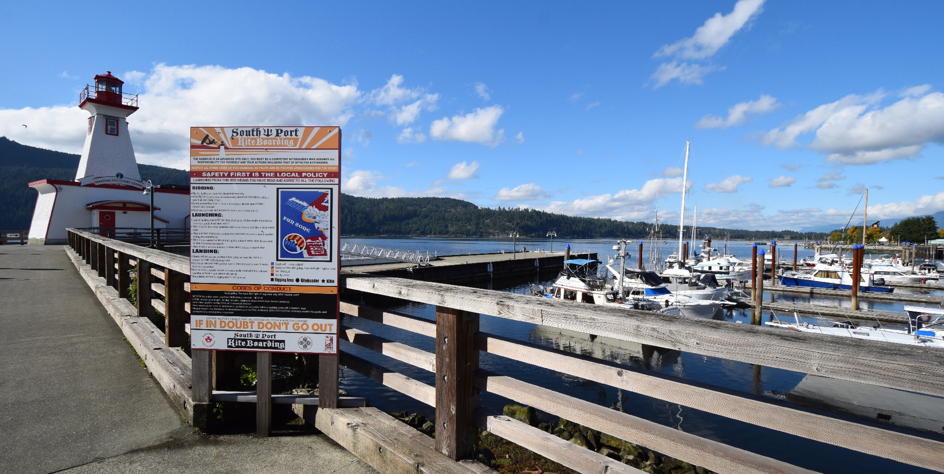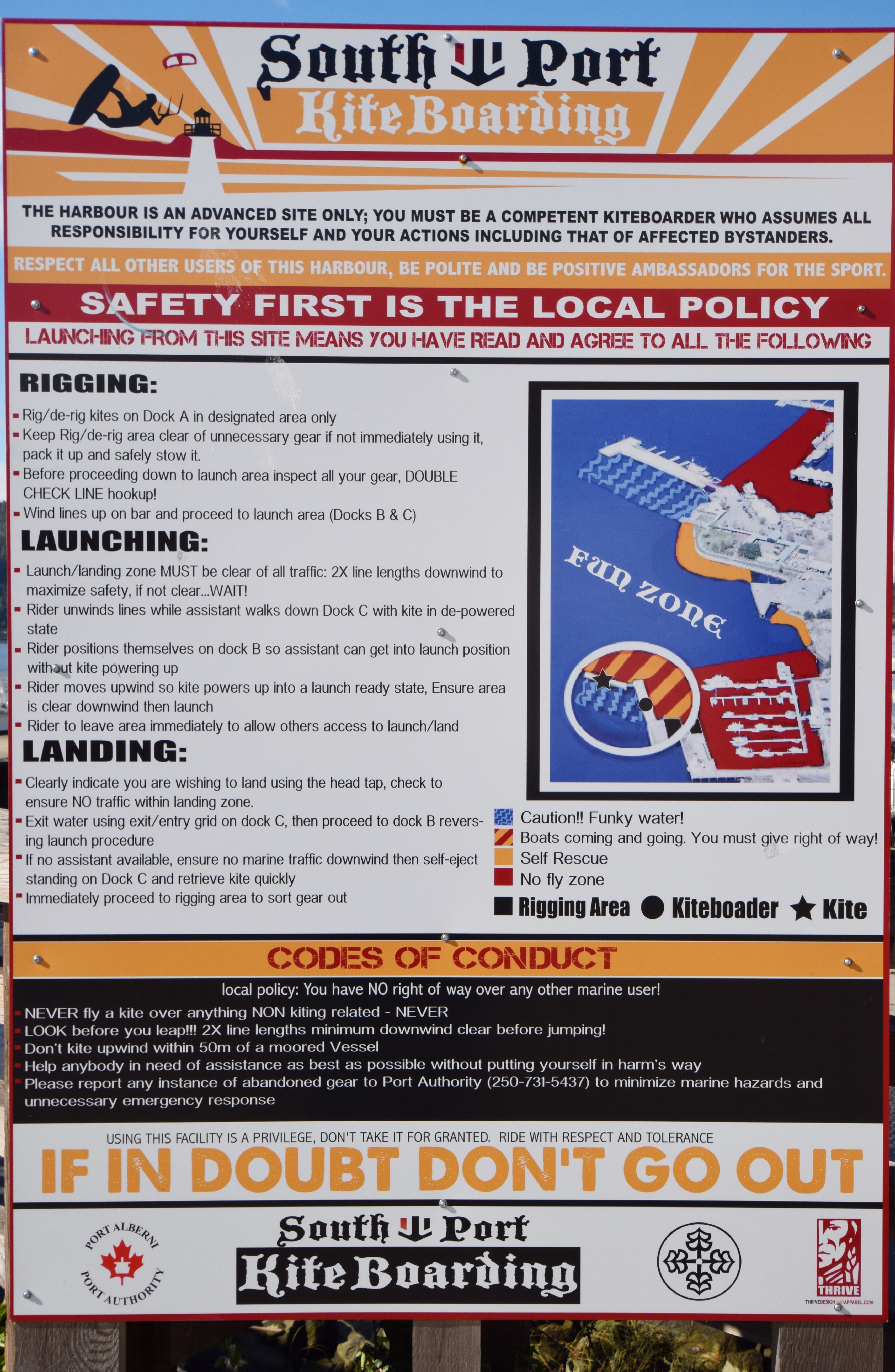 Ah! Kitesurfers here too! Whomever made this sign decided to use every type-face, colour, and formatting option available. Ouch, that's hard on the eyes...