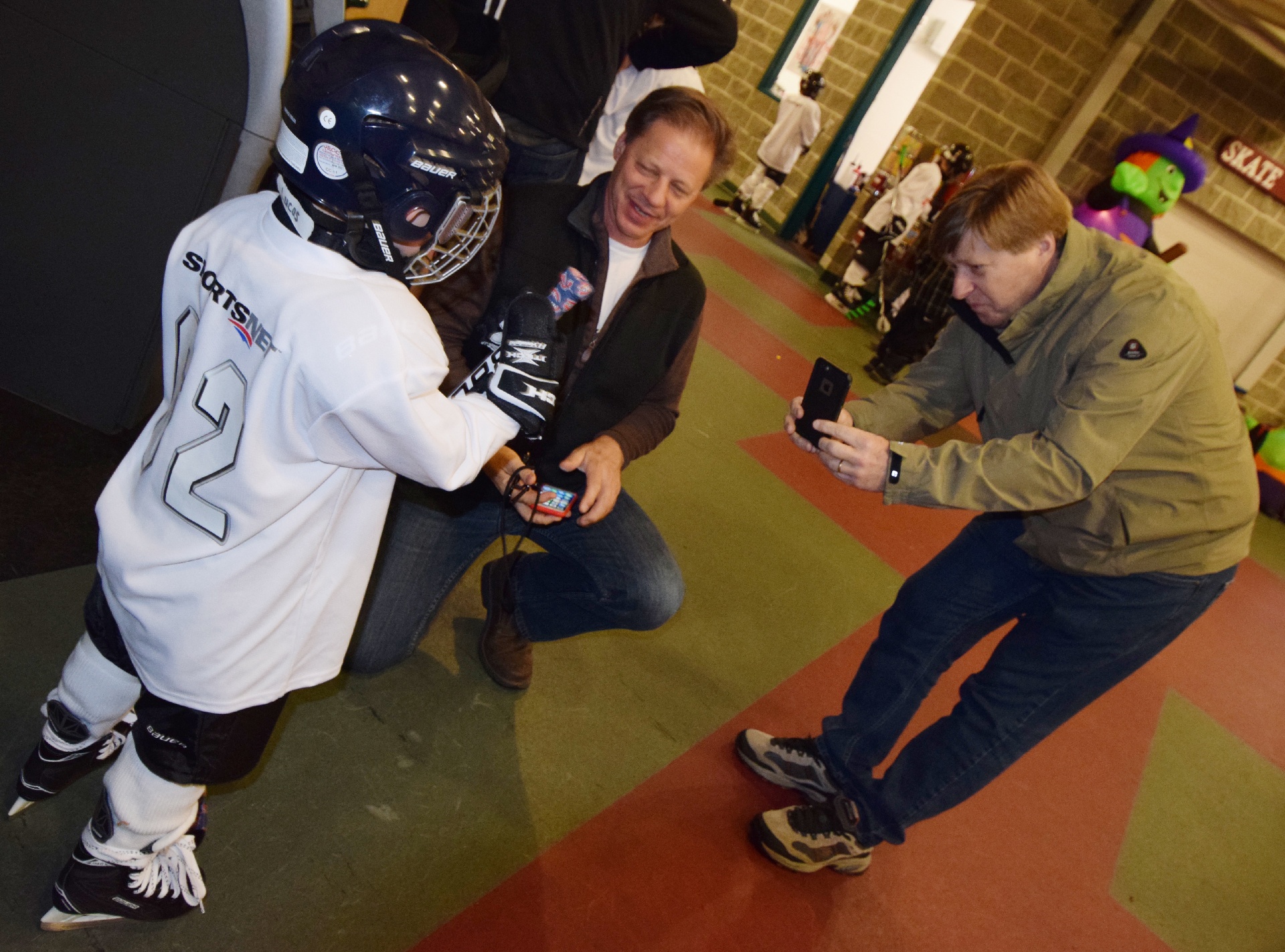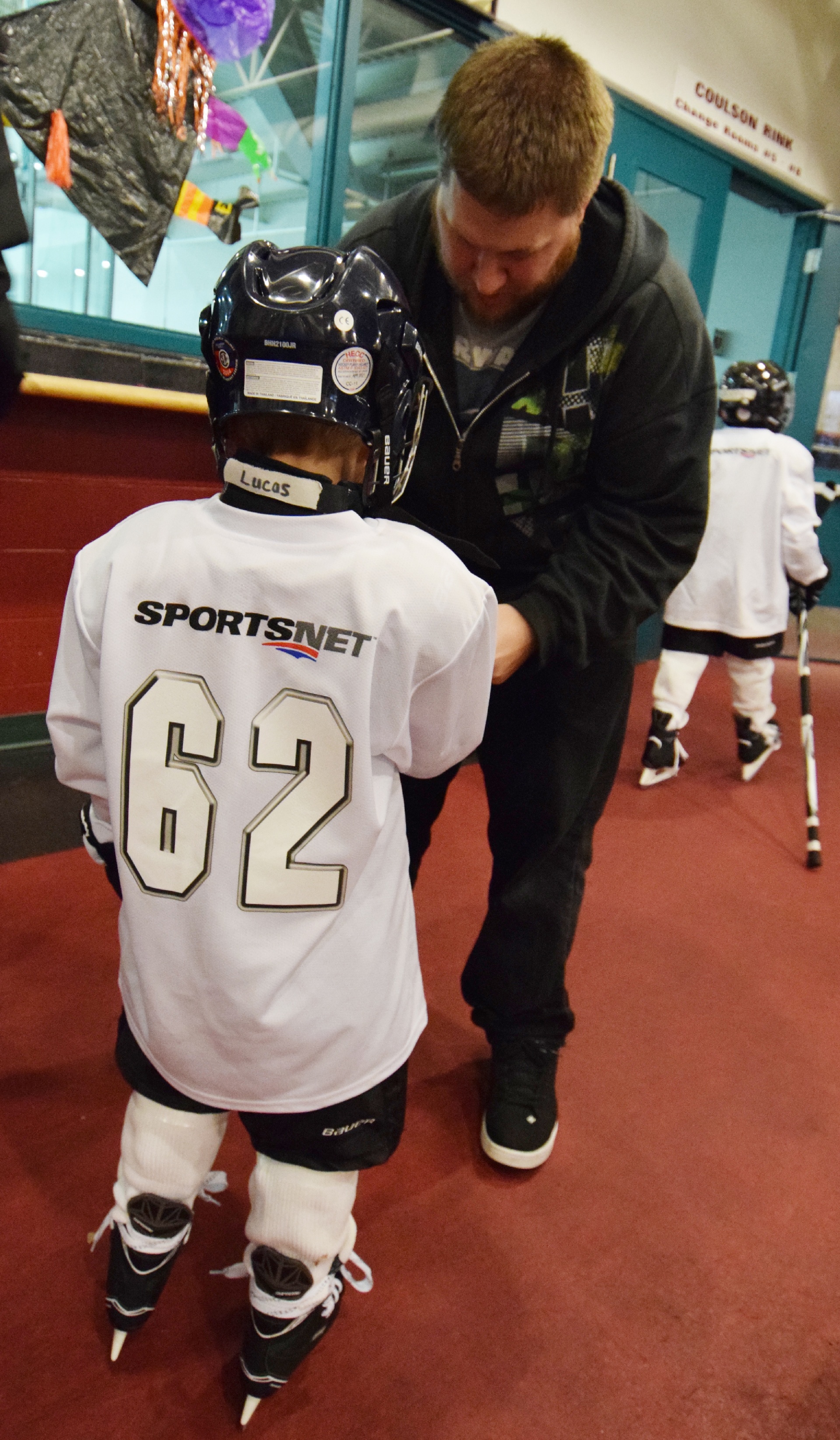 Lucas wanted to use Uncle Jim's hockey sweater number, #62, so James and Krista added the number to his back.