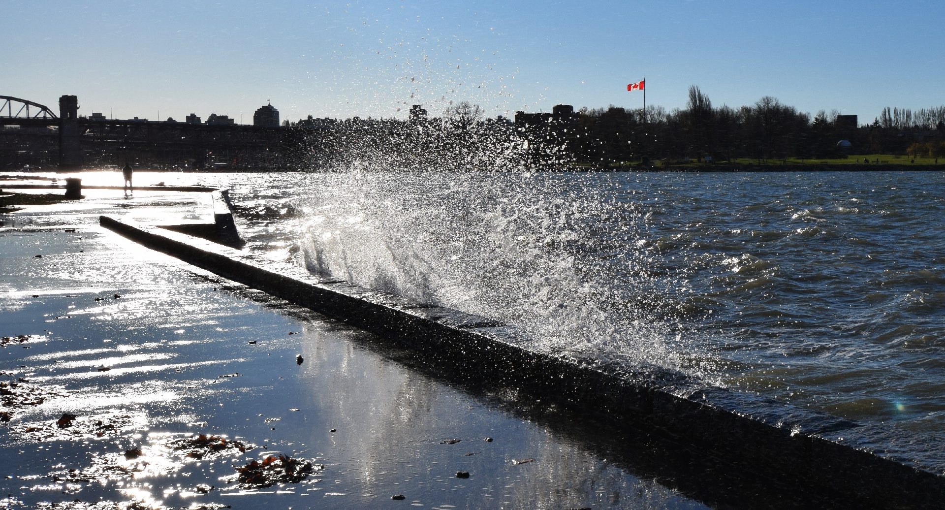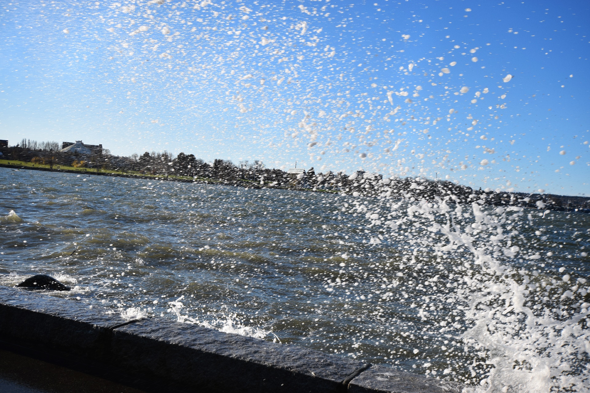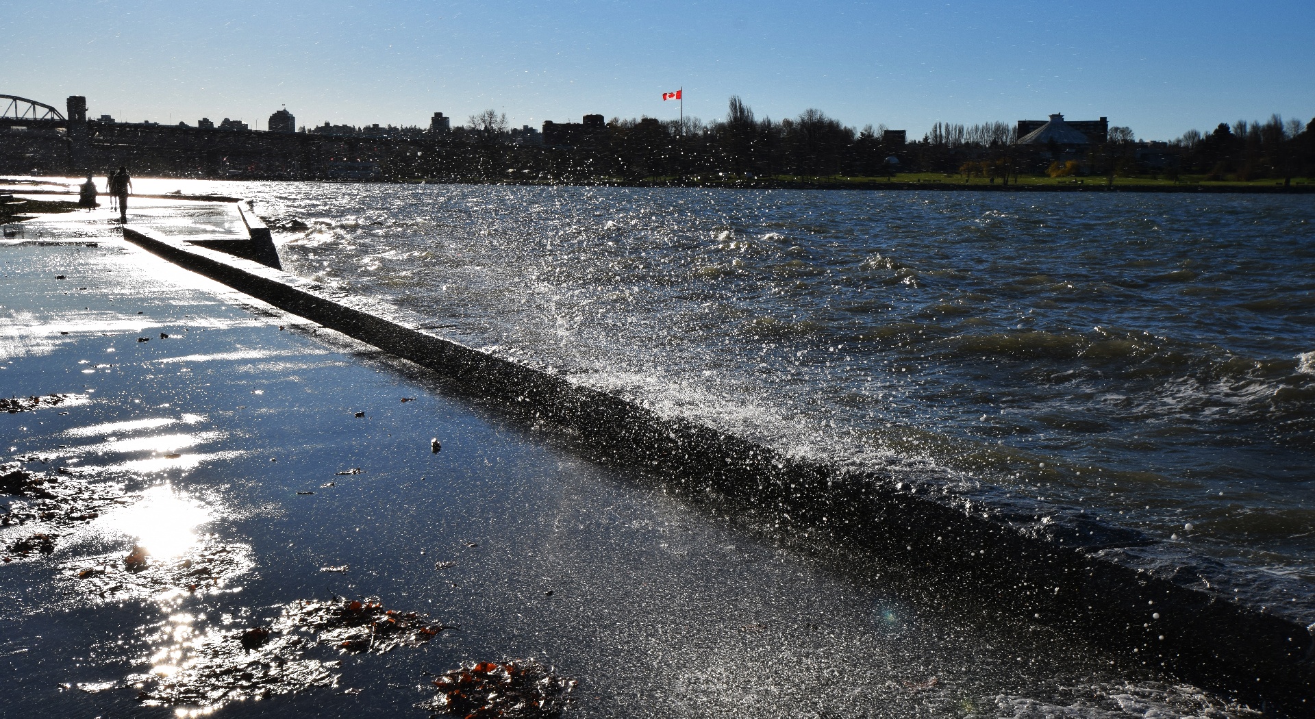 A storm blew through last night, and in the morning it happened to be a very high tide...