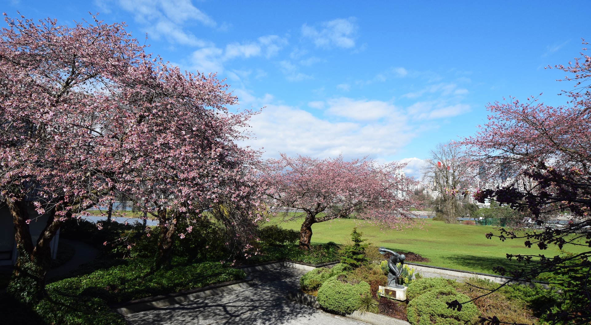 The cherry trees at the back of the Planetarium are still working on it, and will need another week or two...