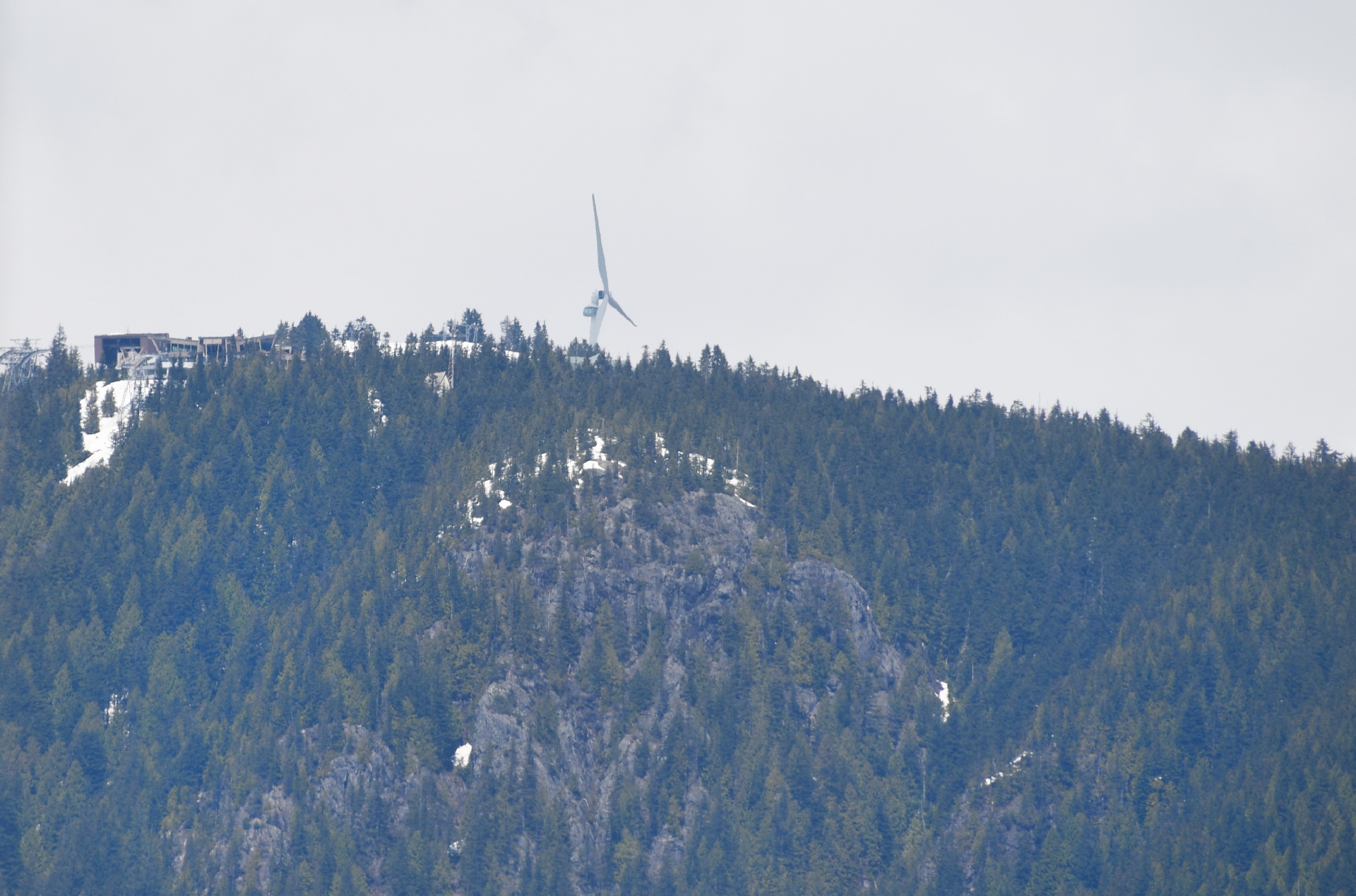 Grouse Mountain. The heat shimmers in the air are making the wind turbine blades look warped!