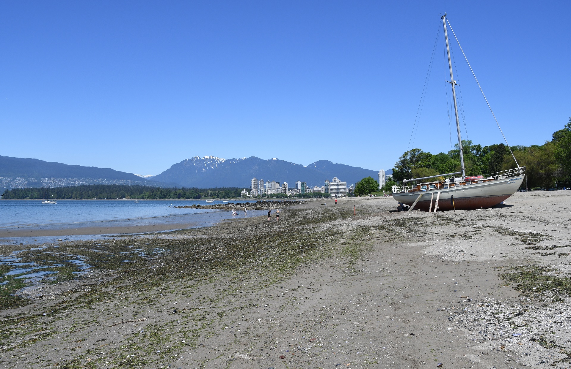 Time to check up on the condition of the latest "beach boats". Hmm. This one's still here, they're digging a deeper hole, should be out next tide...