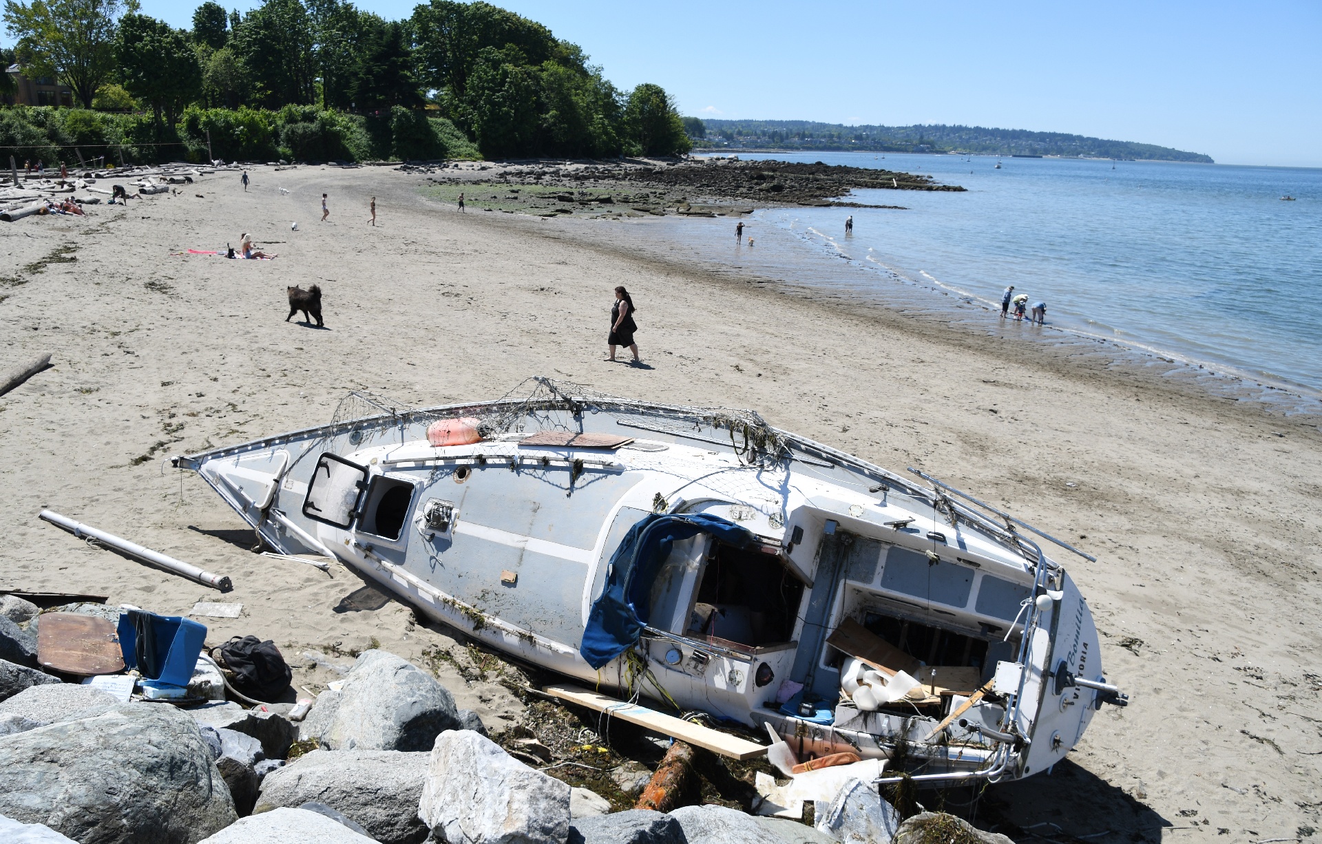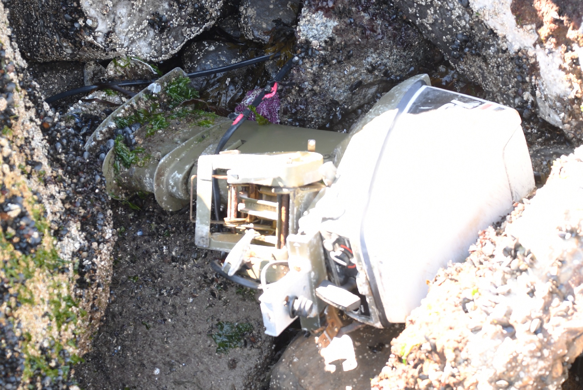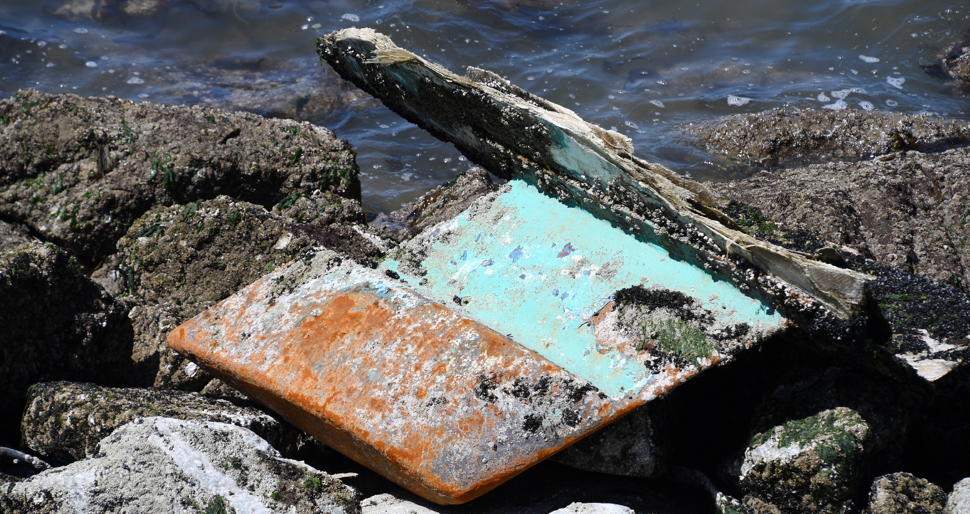 Hmm. A metal boat keel fin, with the remains of the boat still attached...