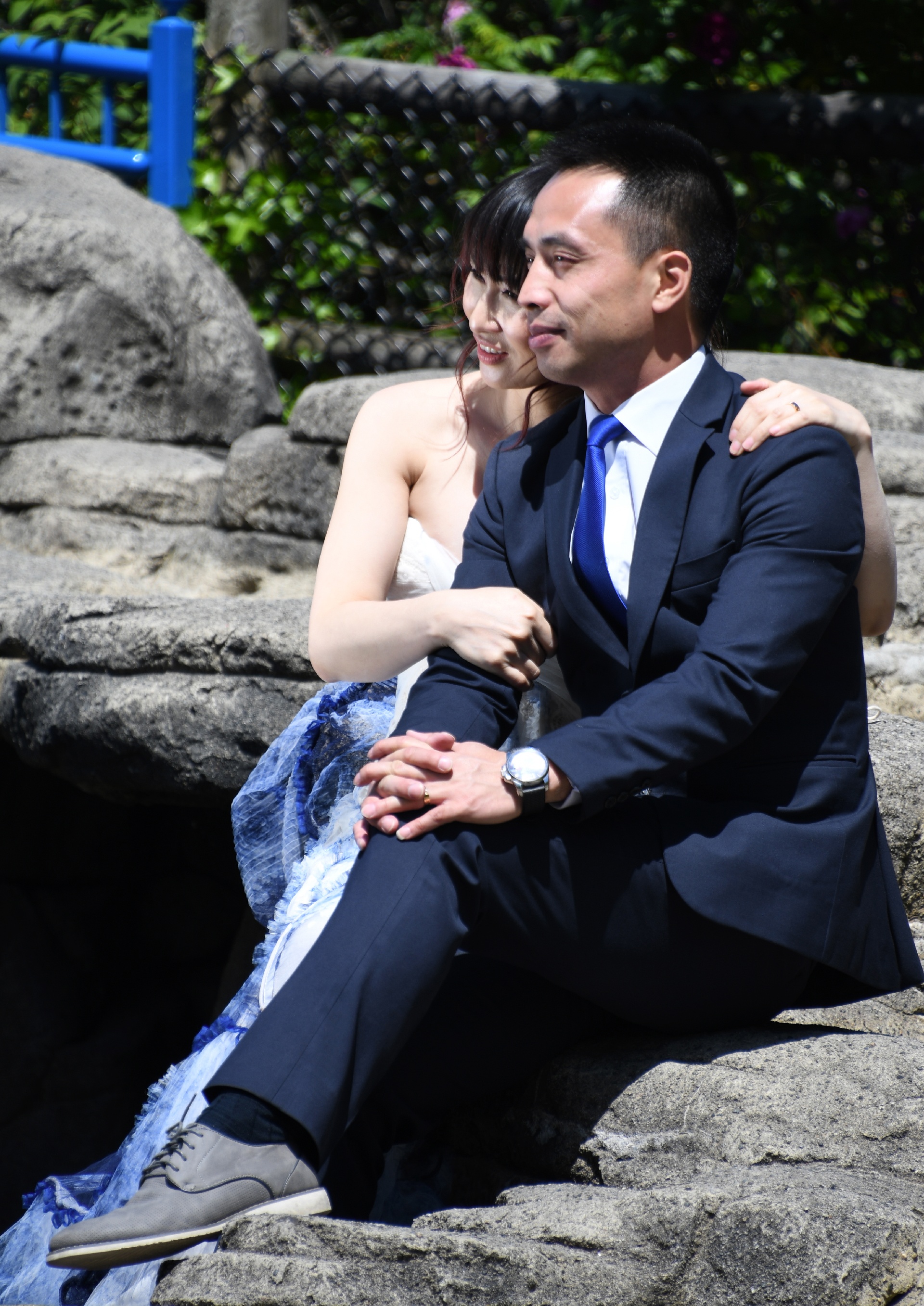 "OK, I know you're sitting on an uncomfortable rock, by try to look natural, and, you know, harmonize with the environment!"