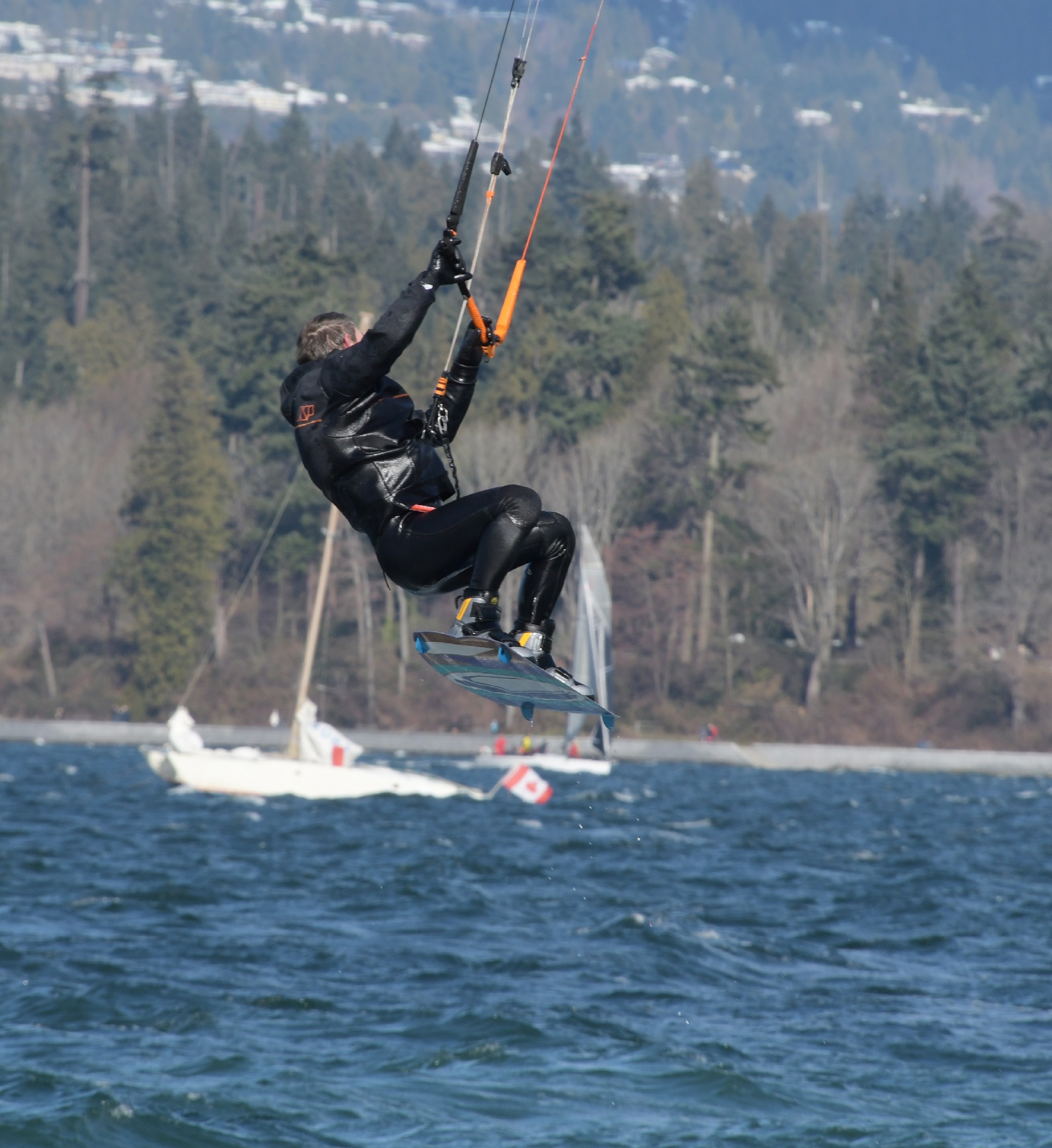 Over the boats, but not quite up to the mountains!