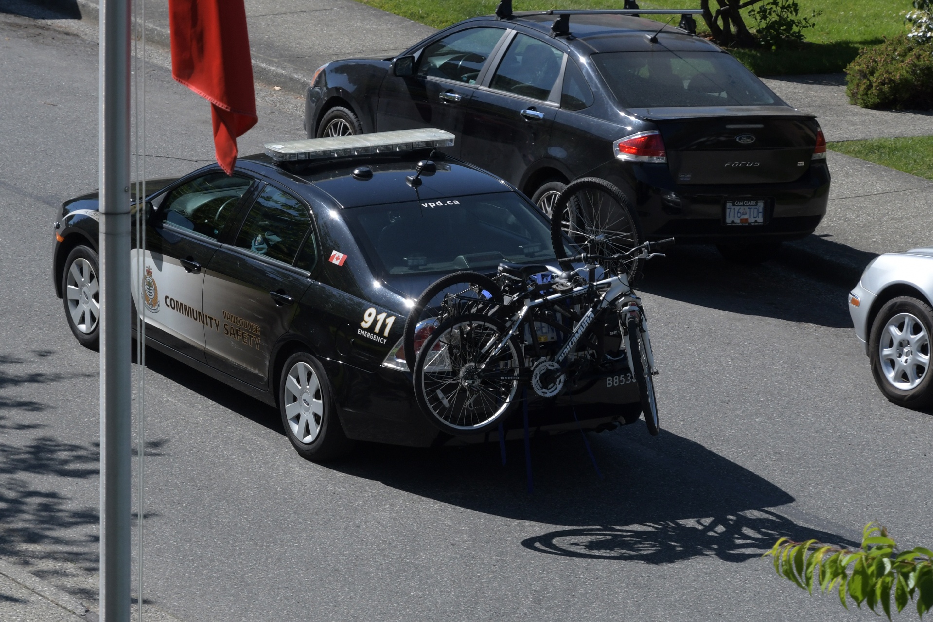 Speaking of the police... We saw a bike in a hedge a few blocks down the road. I called the "found bike" line, and they asked me to extract it from the hedge, and they'll pick it up. They did!