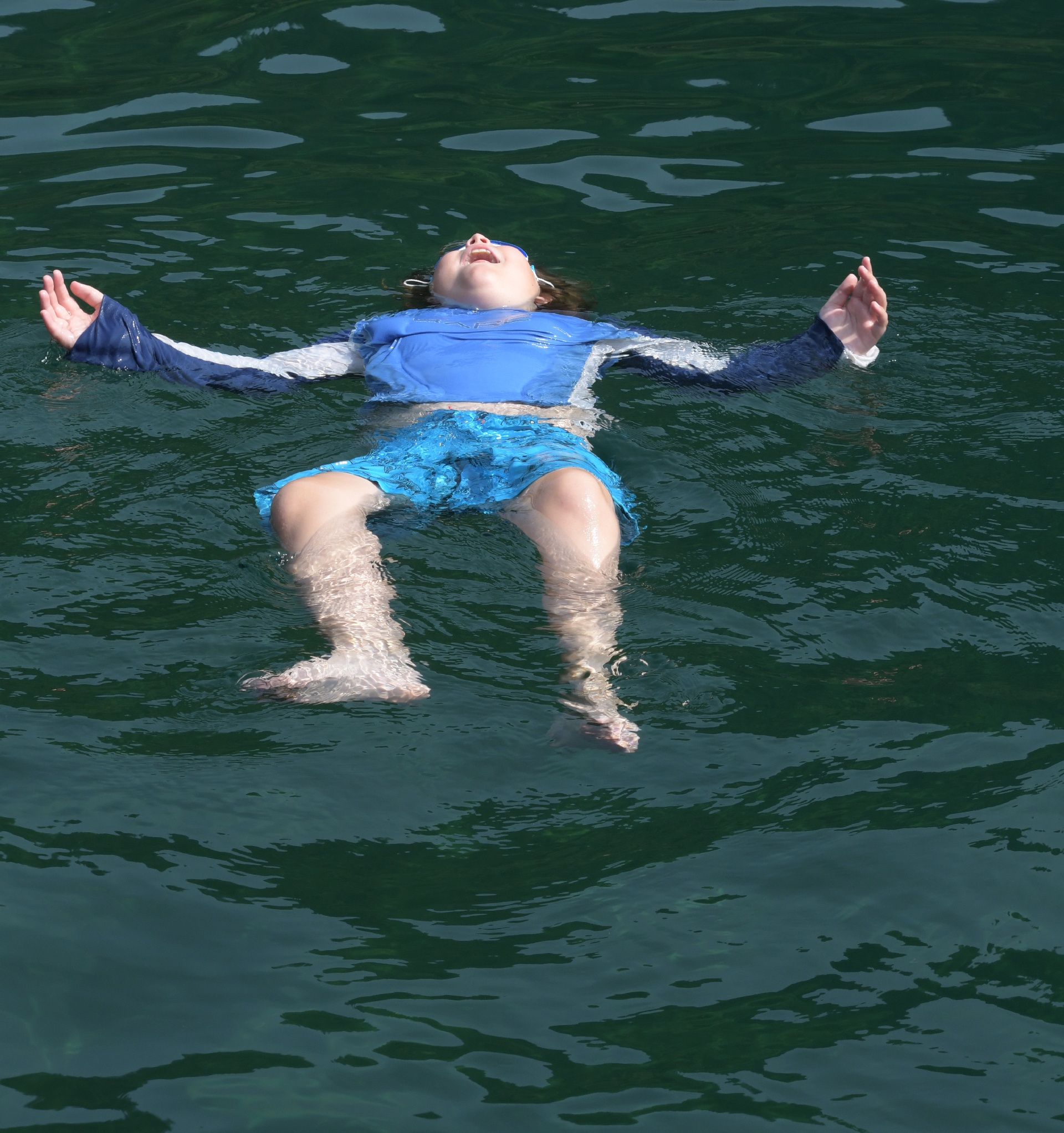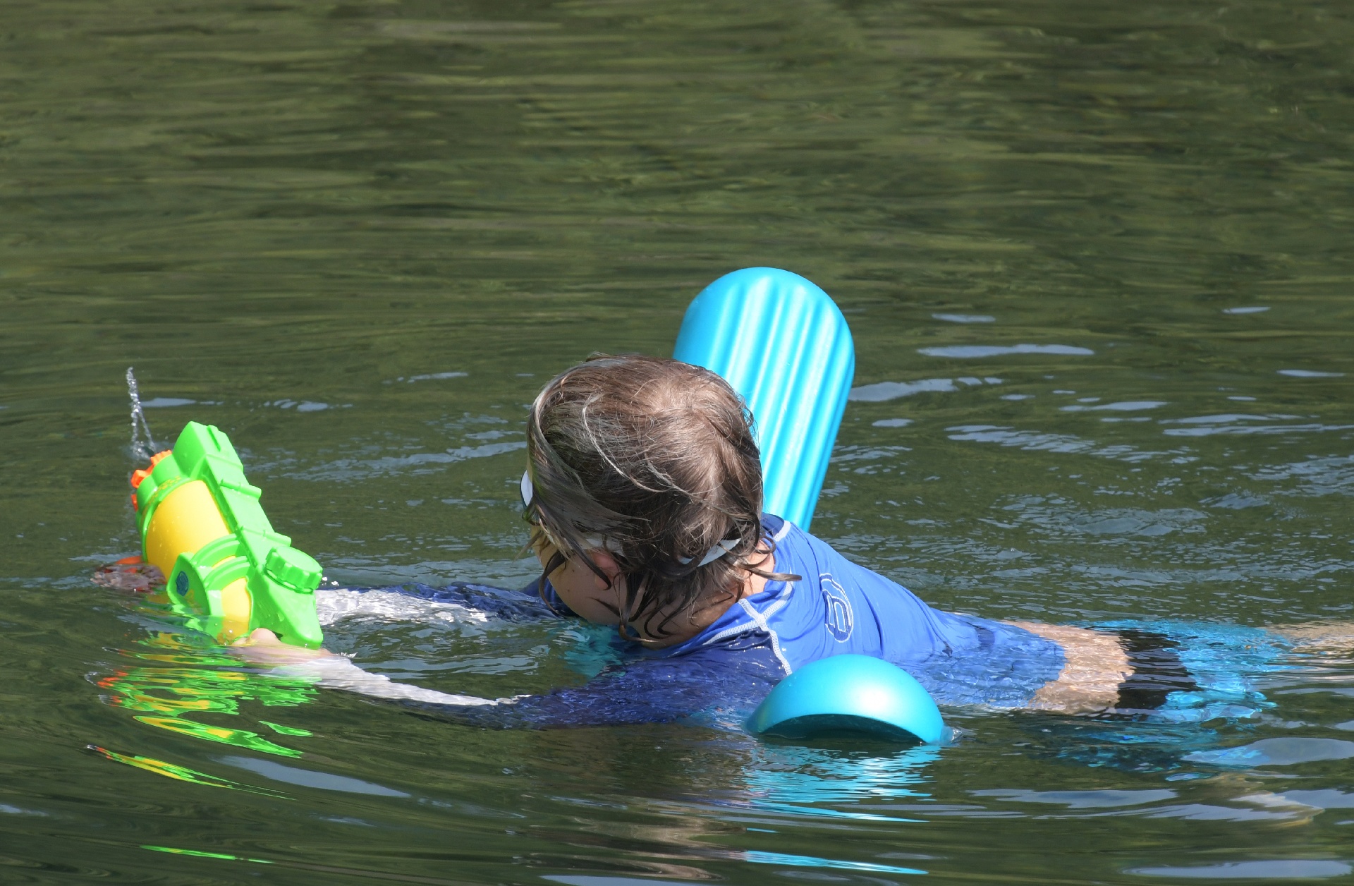 Anything you can do, I can do better... Except that when a ski boat went by, she decided maybe she didn't want to any more...