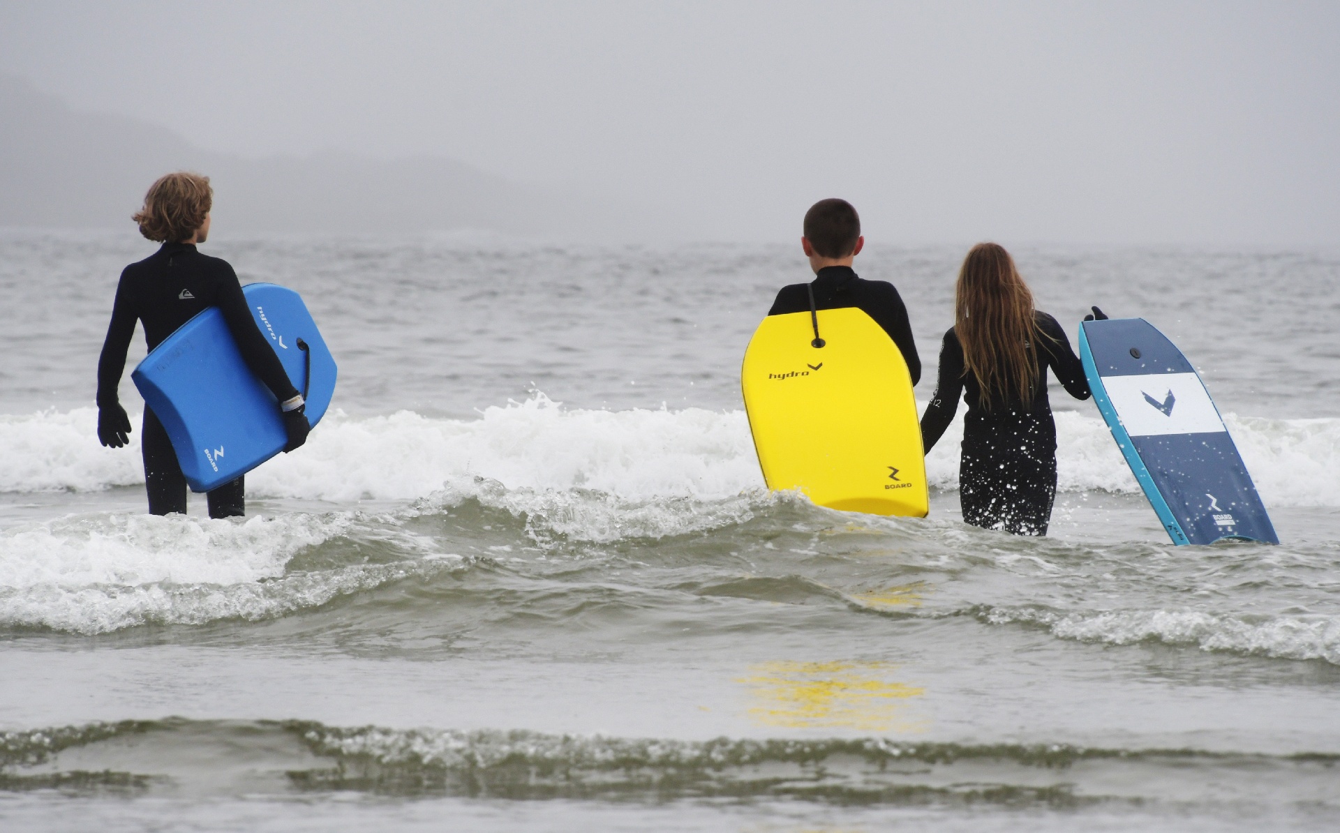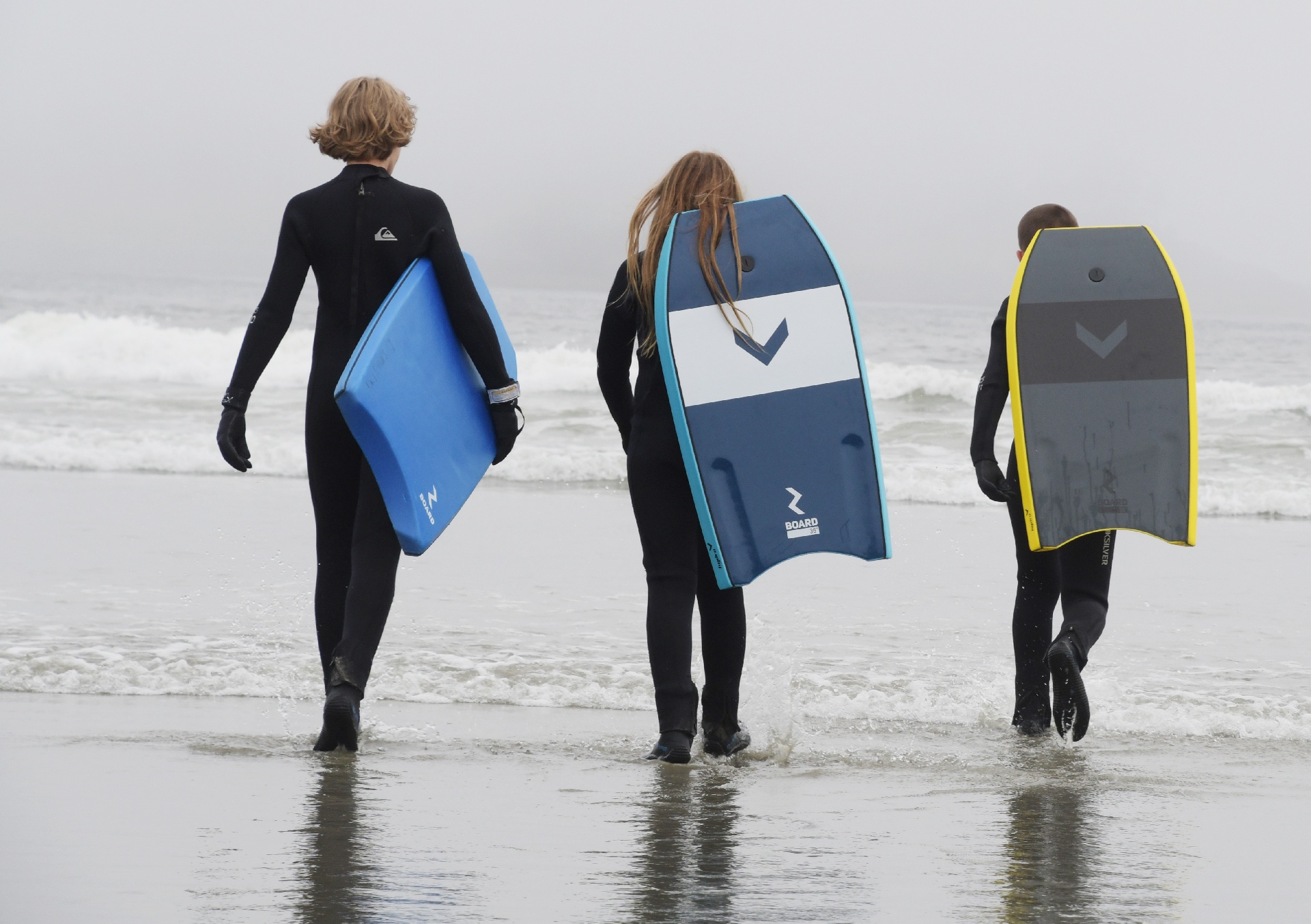 Next up: get the kids into wetsuits, and add a few more boogie boards. ...with colour! These three didn't want to change out after the fitting, so they went straight to the waves, with uncle Nikon.