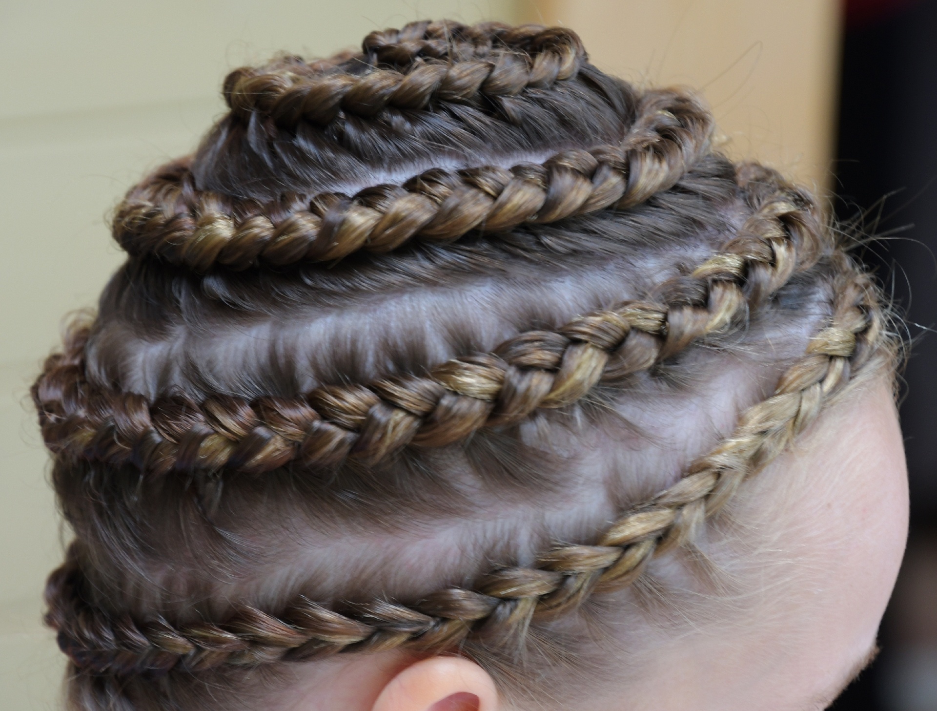 Alaina had braided Taryn's hair into this beehive shape. Looked good, and keeps her hair under control!