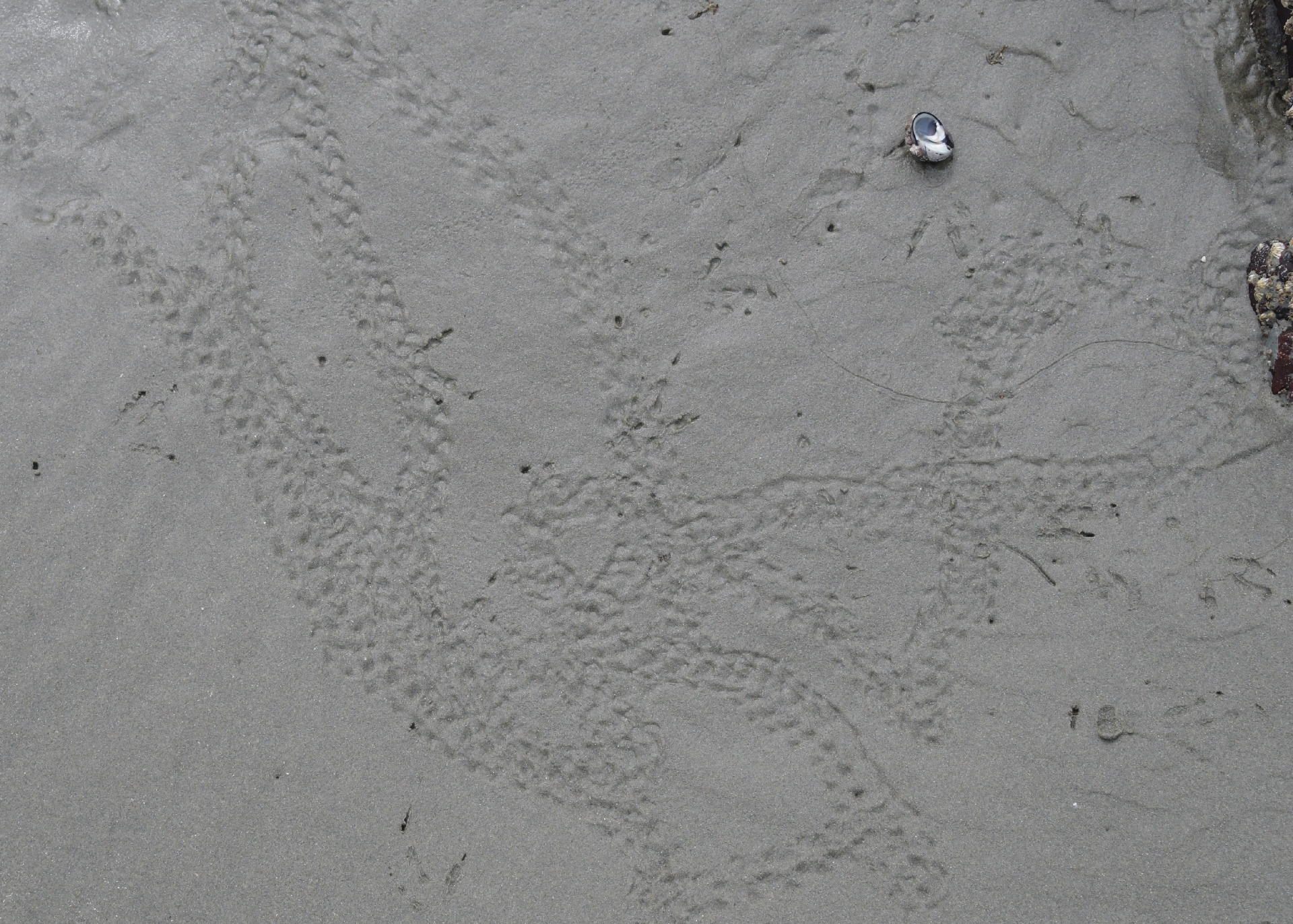 ...speaking of predators... A hermit crab made that wide dimpled ribbon track.