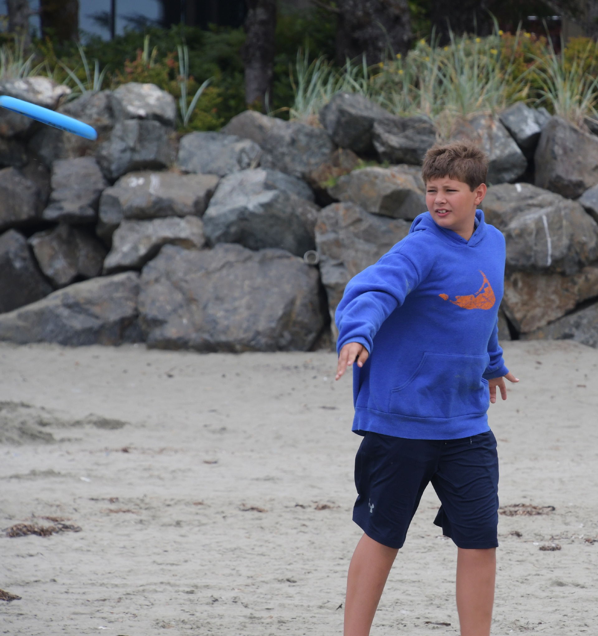 Well, when the weather isn't making waves, it's beach time! "Here, have a frisbee..."