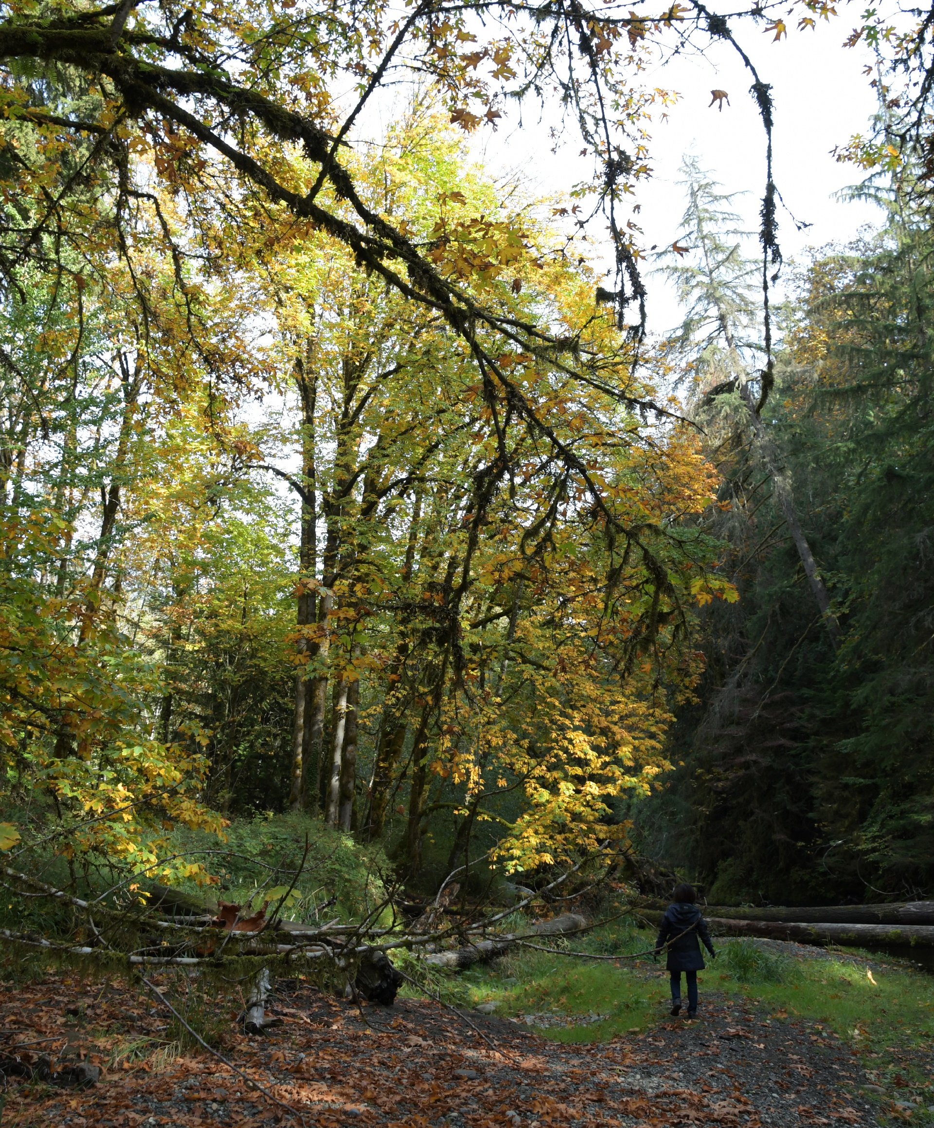 But the shore ends in, well, more fallen logs, and a deep section of the creek. Now the only option was pushing our way through the ferns, looking for the trail...