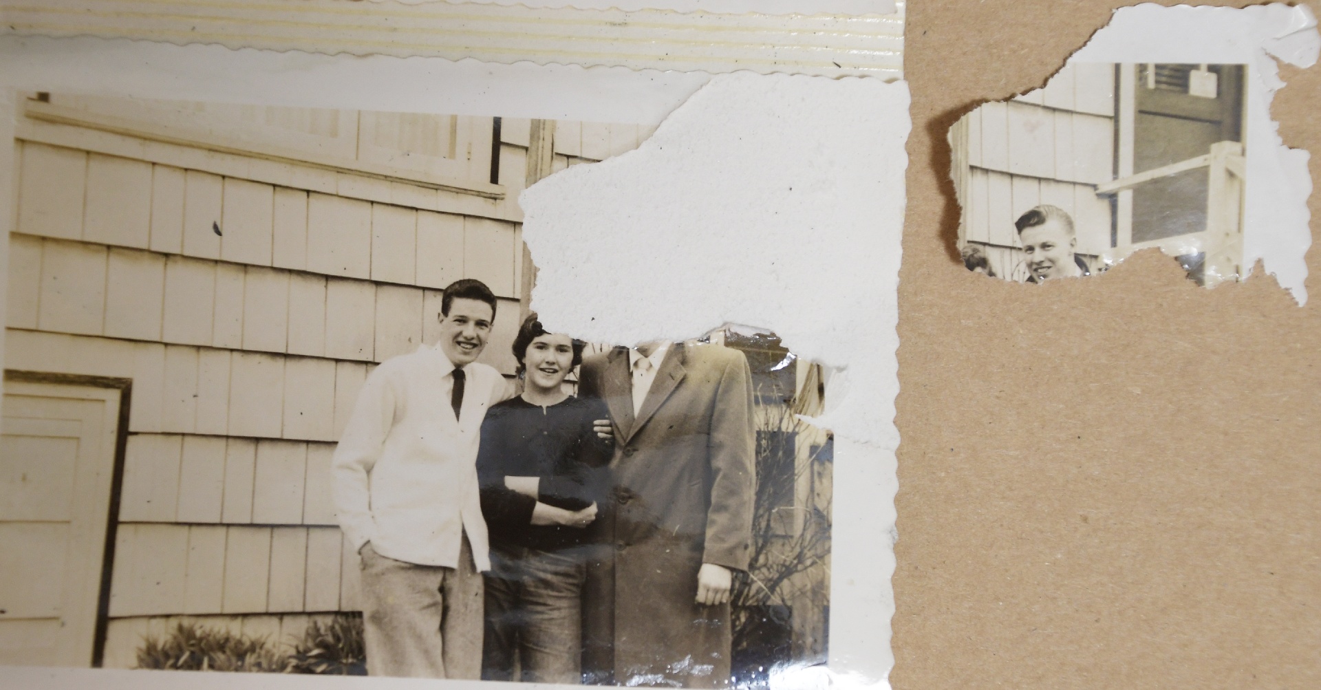 This was another problem: some of the pictures had been torn during an earlier attempt to remove them from the album.