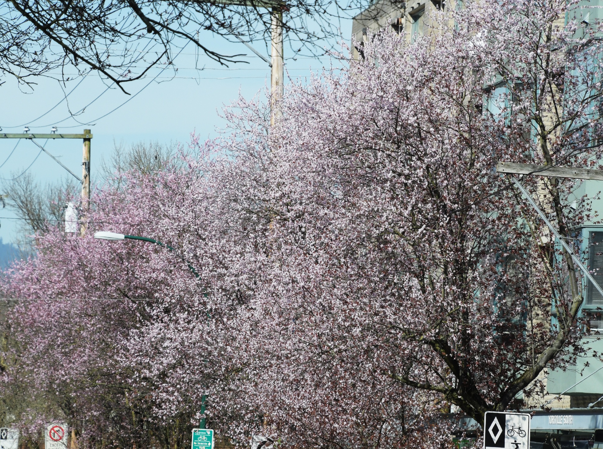 The search for cherry blossoms has begun... The trees (not cherry) still look pretty bare, down by Kits Beach...