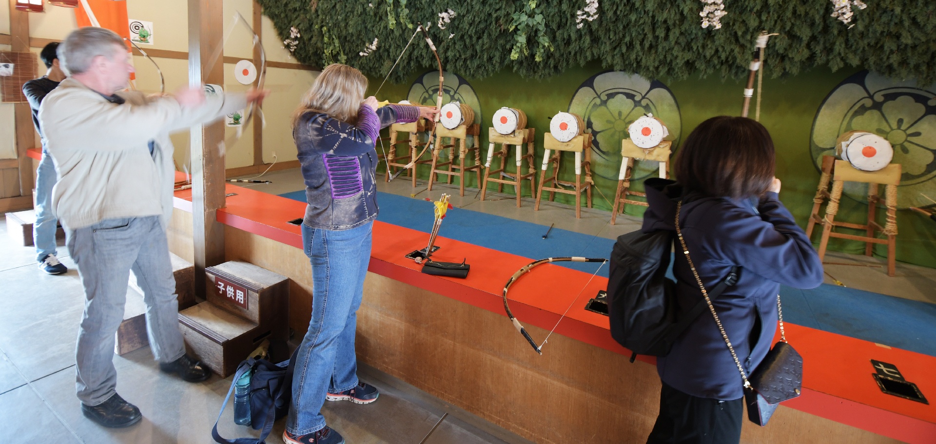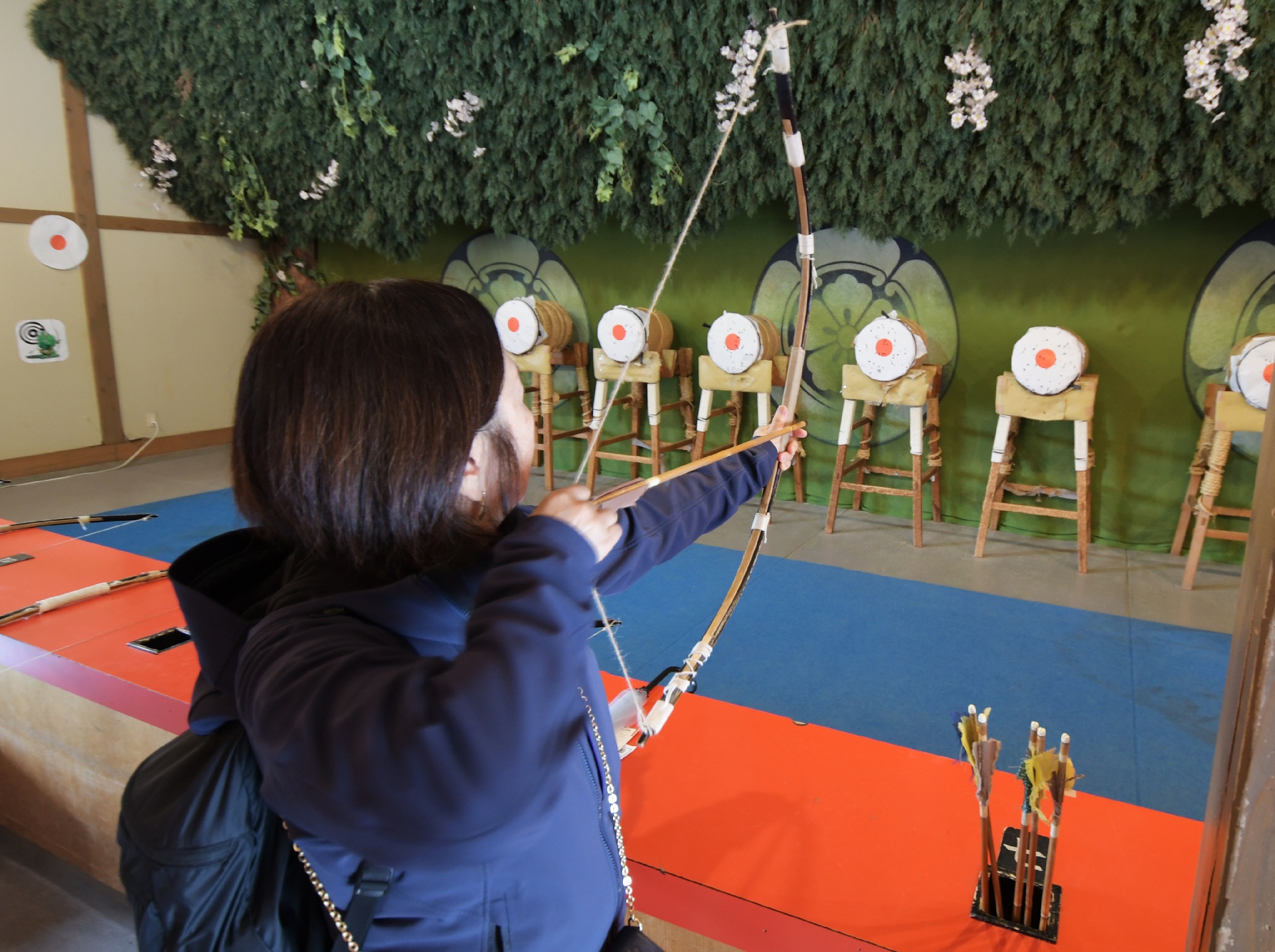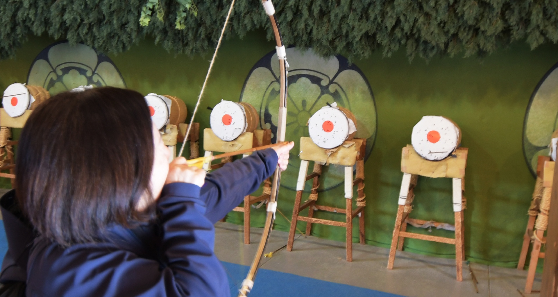 Yup, archery! The challenge: prizes awarded for hitting the butt, and more for the bullseye!
