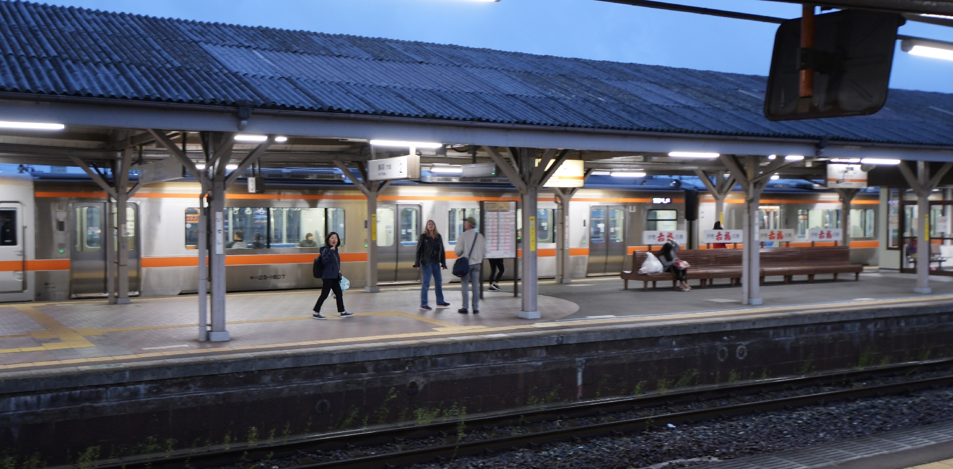 We ate near the station, and quickly found our platform. No, I'm not on the wrong one, I just wanted to get a picture of them, with the tracks...