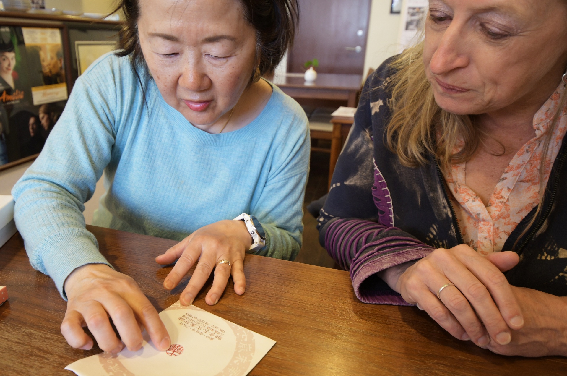 And there Yuko explained the stamp to Marion. The writing is stylized, and would be pronounced "Don" (Do = earth, n = lucky)